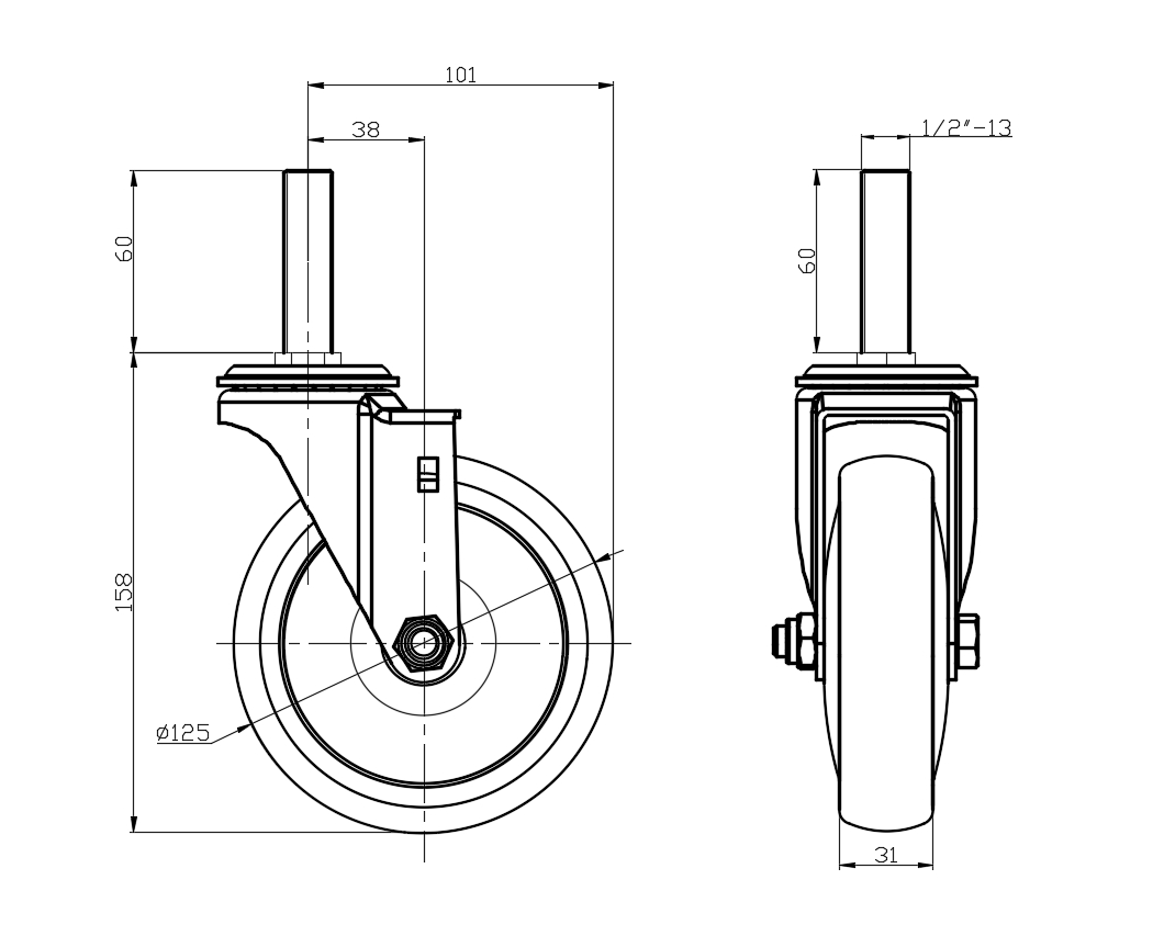 Swivel Caster, thread-Riveted Stamping Fork—1/2"-13"