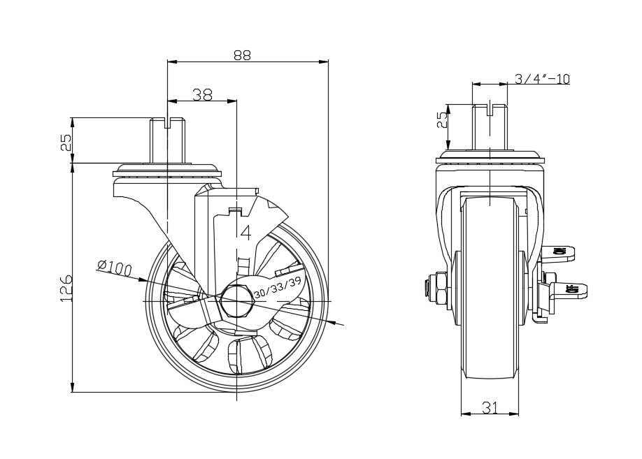 | WPP (Black) Wheel Diameter × Wheel Width 100 x 31mm |