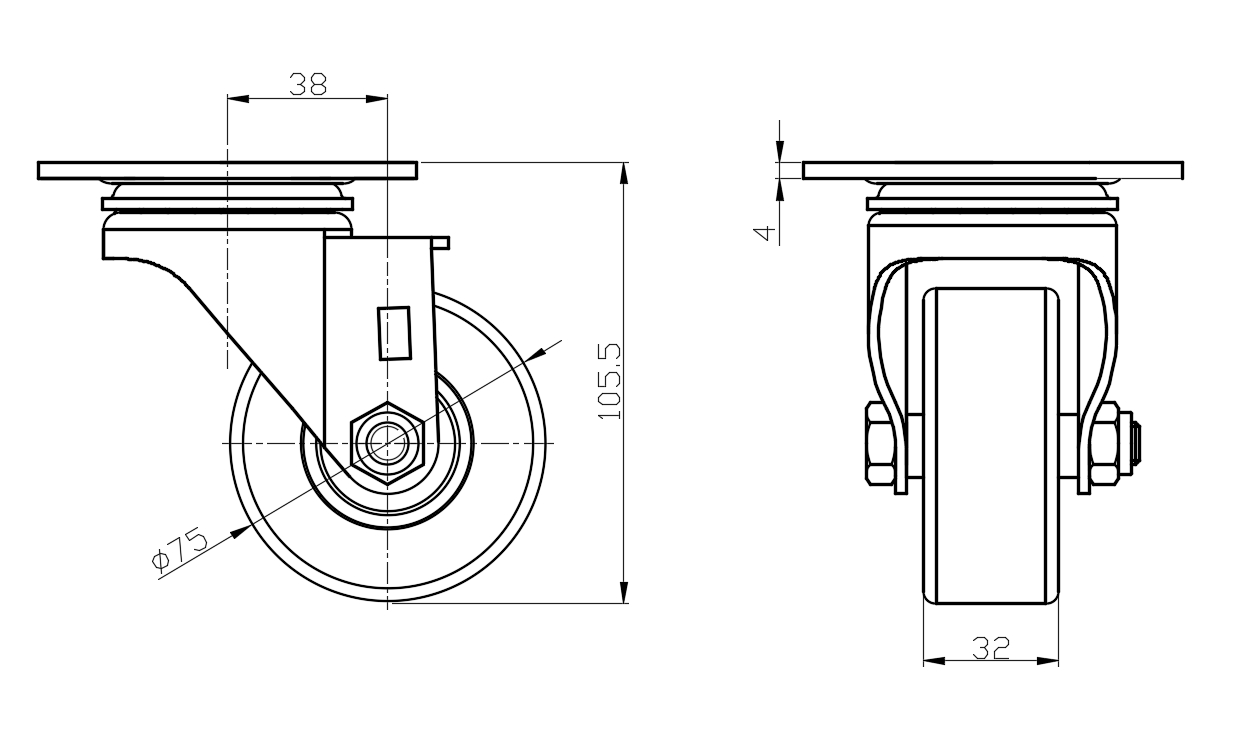 | Wheel tread: Made of high quality polyurethane Wheel Center: cast iron core Drawings are for reference only and may differ from the product |