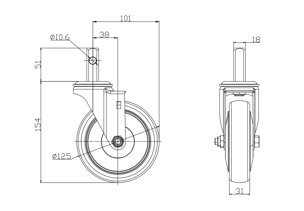 | PPU (Grey) Wheel Diameter × Wheel Width 125 x 31mm |