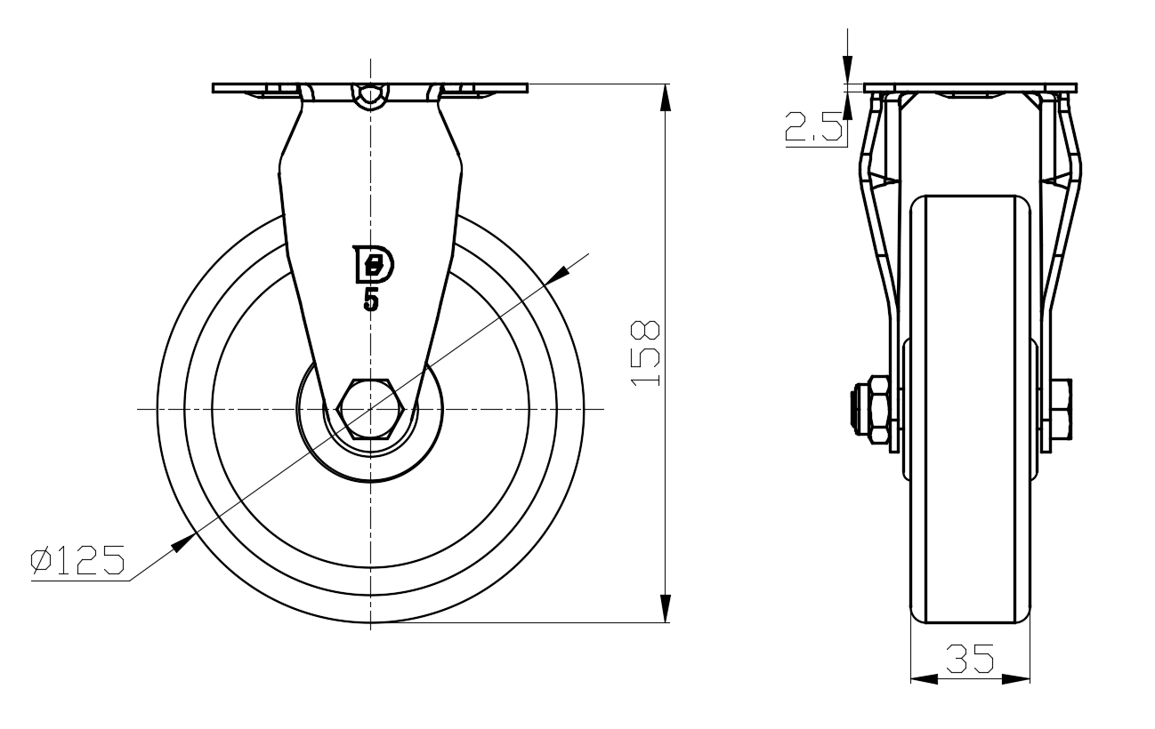 | Wheel tread: Thermoplastic (PA6) Wheel Center: Thermoplastic (PA6) Drawings are for reference only and may differ from the product |