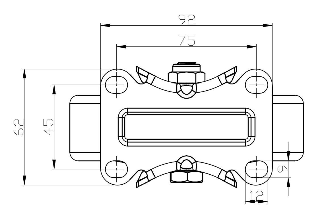 | Rigid castor, Stamping Fabricated Caster Fork - 75 x 45 mm (3" x 1-3/4") Bolt Hole Spacing Extended control lever surface, Mounting Type - Top Plate Reinforced Polypropylene and Wheel Tread Black, wheel - Plain Bearing |