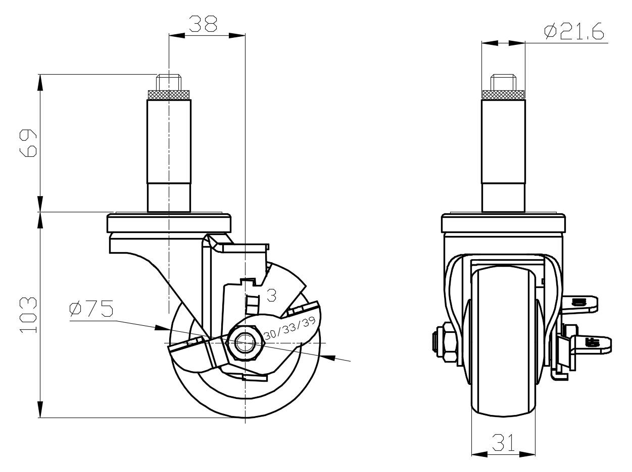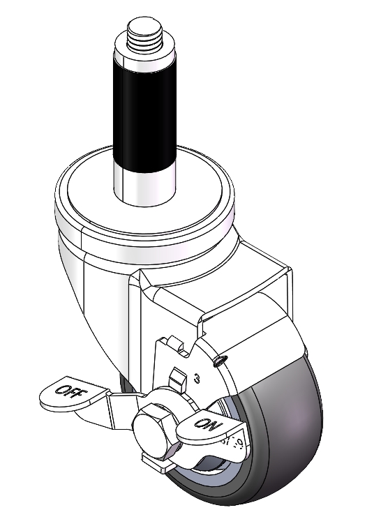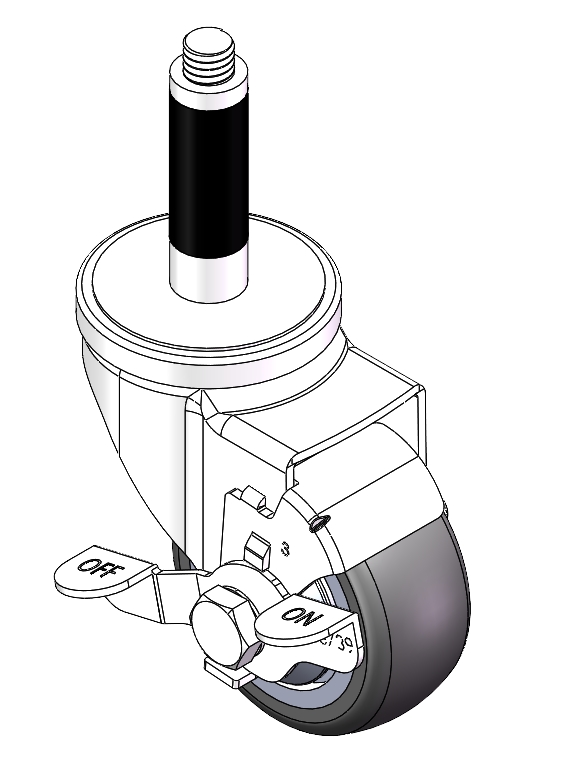 Casters with Side Brakes and With locking system. Threaded Stem Riveted Pressed Fork – 1/2"-13"