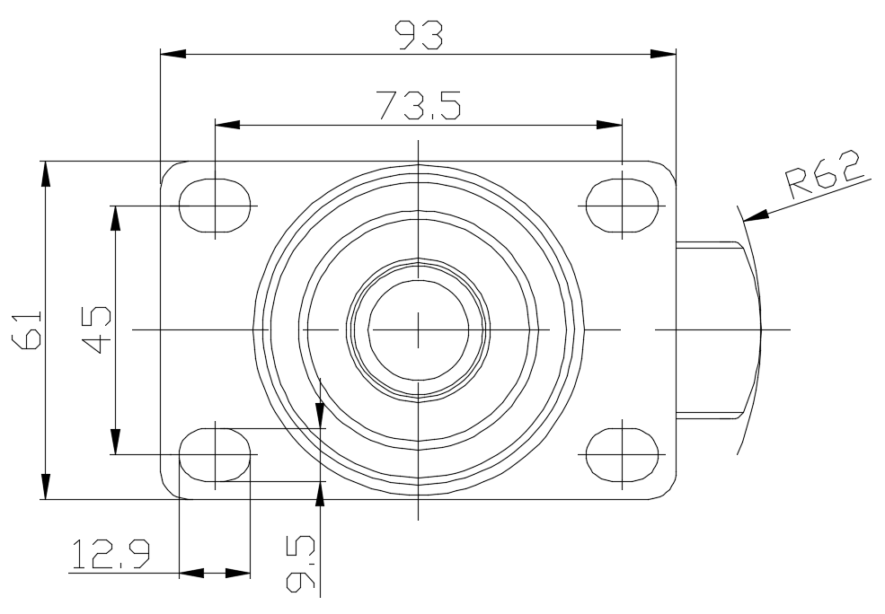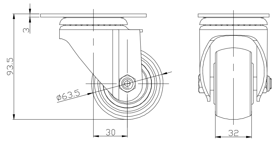 | Tread:Polypropylene Wheel Center:Polypropylene Drawings are for reference only and may differ from the product |