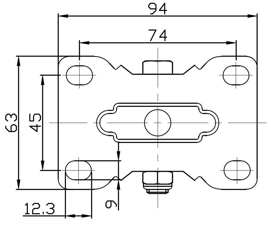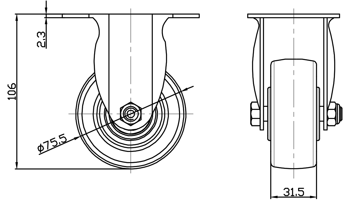 Rigid Caster with Stamping Fabricated Caster Fork and 75 x 45 mm (3" x 1-3/4") Bolt Hole Spacing.