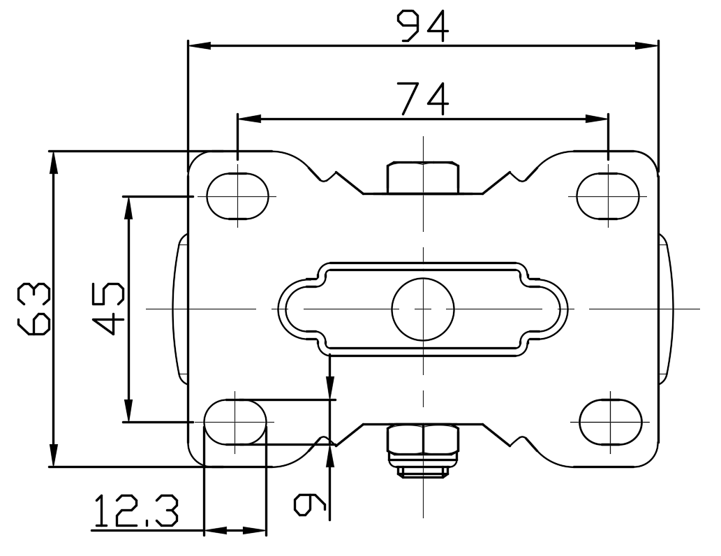 Rigid Caster with Stamping Fabricated Caster Fork and 75 x 45 mm (3" x 1-3/4") Bolt Hole Spacing.