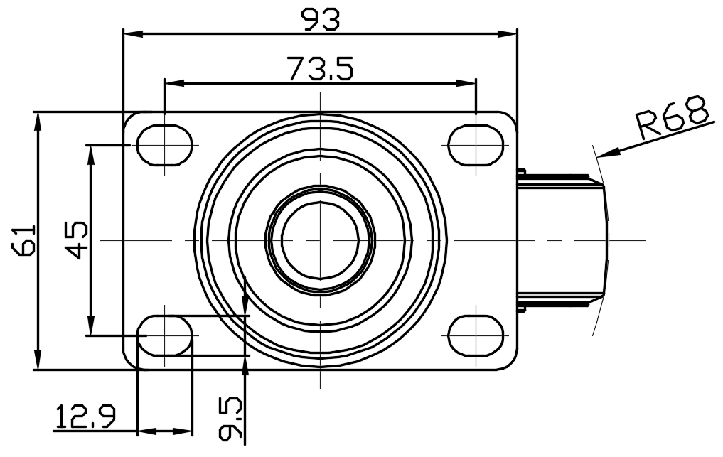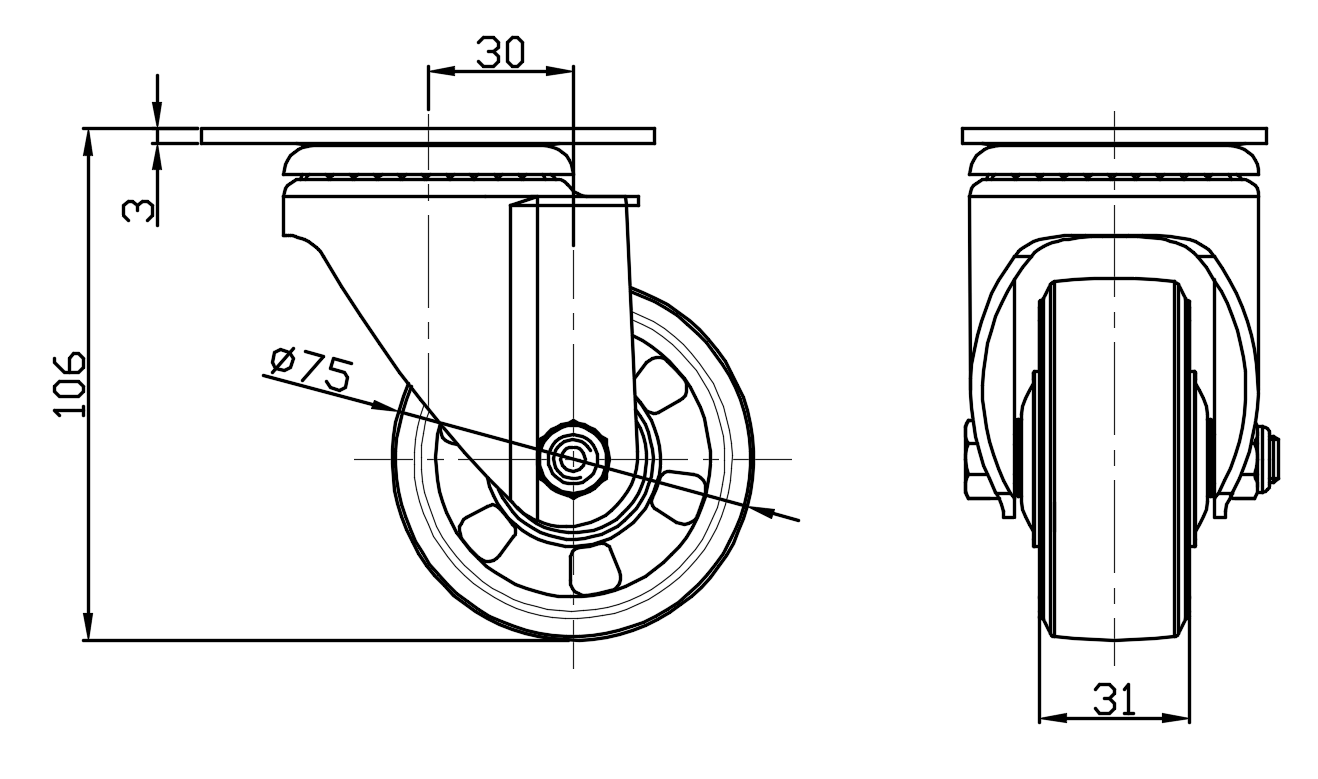 Swivel Caster with Riveted Fork and Stamping Fork—75 x 45 mm (3" x 1-3/4") Bolt Hole Spacing