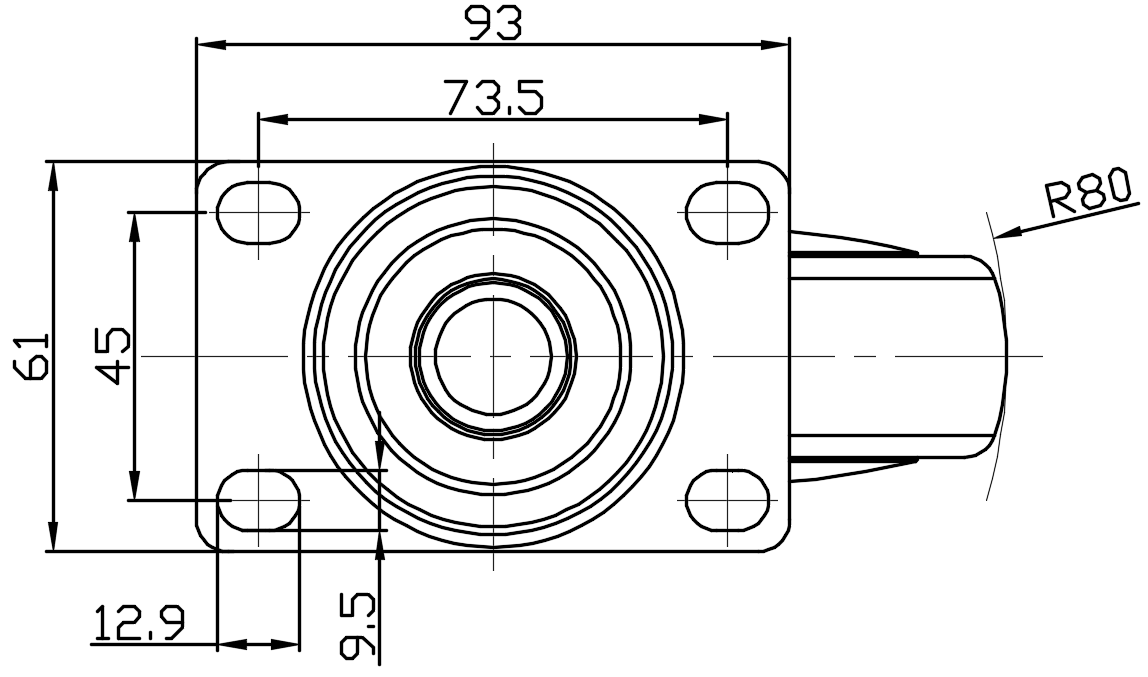 Swivel Caster with Riveted Fork and Stamping Fork—75 x 45 mm (3" x 1-3/4") Bolt Hole Spacing