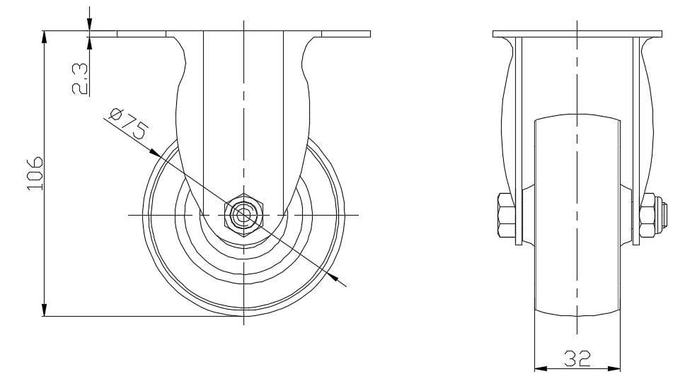 | Nylon Wheel (Natural Color) Wheel Diameter × Width 75 × 32 mm |