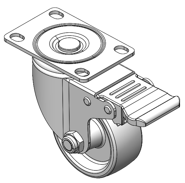 Casters with Total Brakes and With locking system. Top Plate Riveted and Stamping with 75 x 45 mm (3" x 1-3/4") Bolt Hole Spacing.