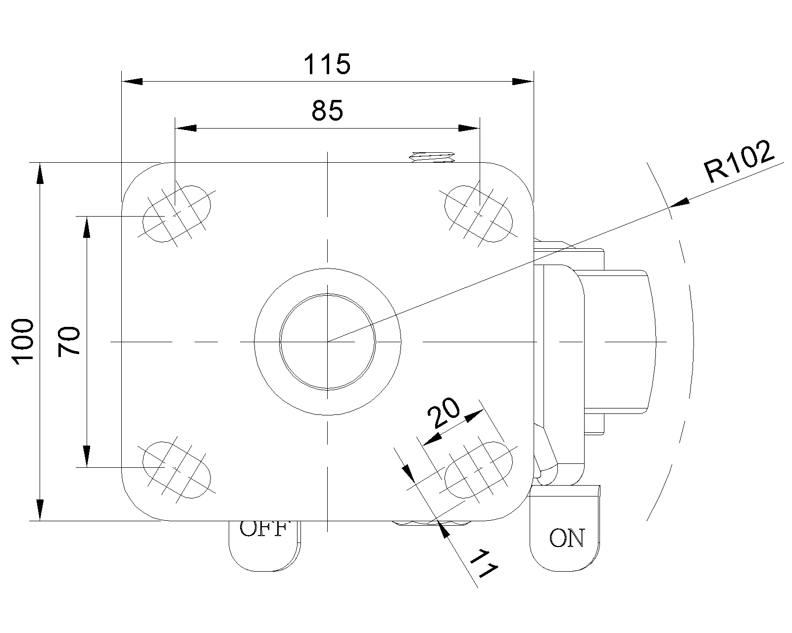 表面镀锌,底板式安裝裝置,孔距85x70 聚丙烯轮芯、轮面本色 轮子轴承—精密滚珠 |