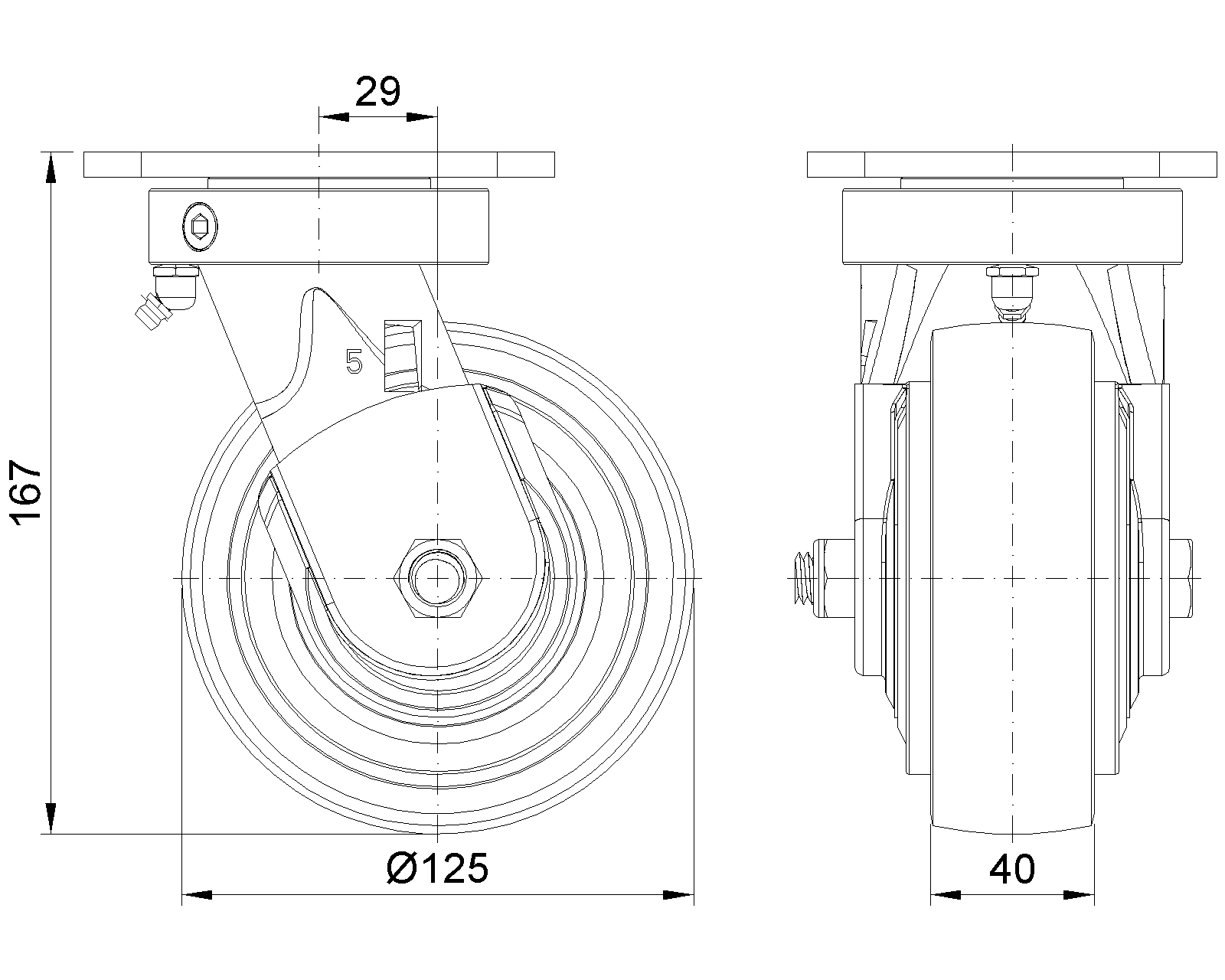 | Wheel tread: Made of high quality polyurethane Wheel Center: iron core/cast iron core Drawings are for reference only and may differ from the product |