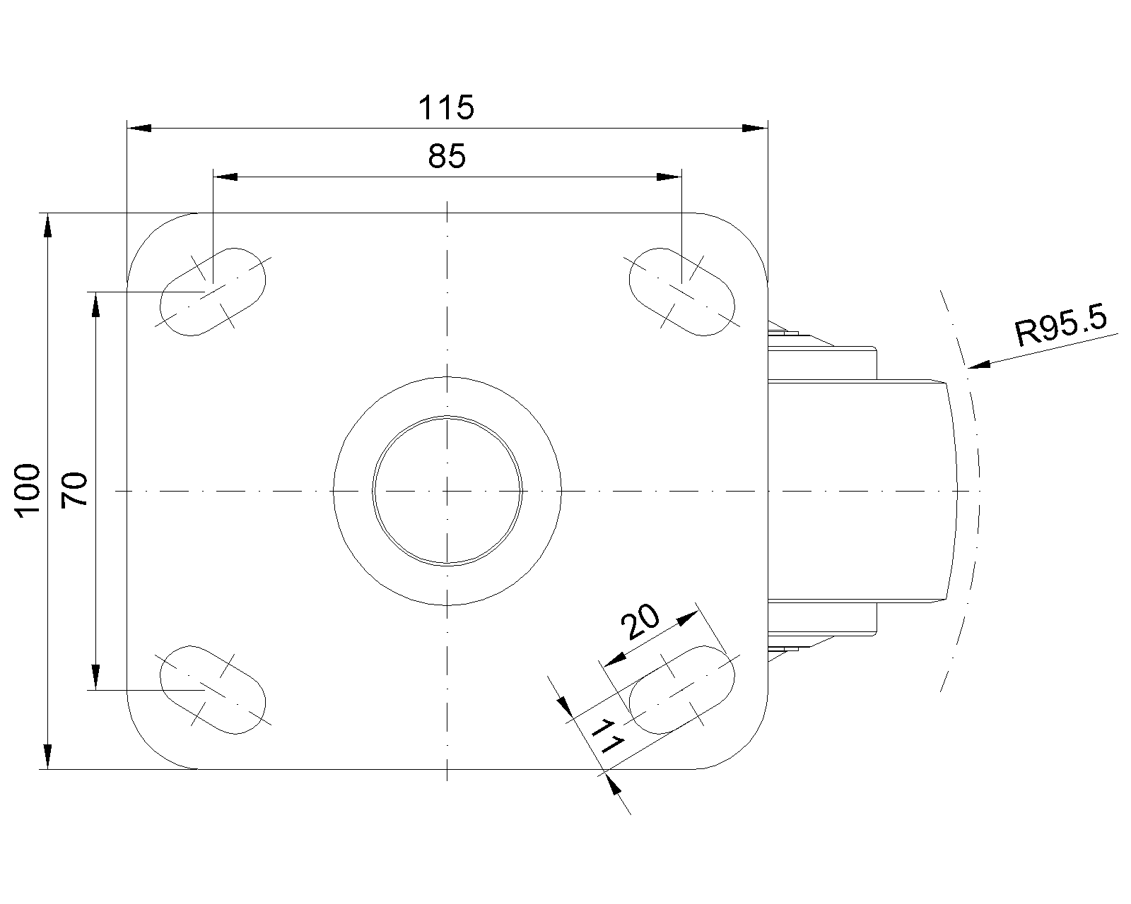 | Swivel Caster, Welded Caster Fork Extended control lever surface, Top Plate Mounting Type, Hole spacing 85x70 Cast Iron Wheel Center, High Quality Polyurethane Wheel Tread, Cast Iron red Bearing - Ball Bearing, with special Anti-thread wheel cover |