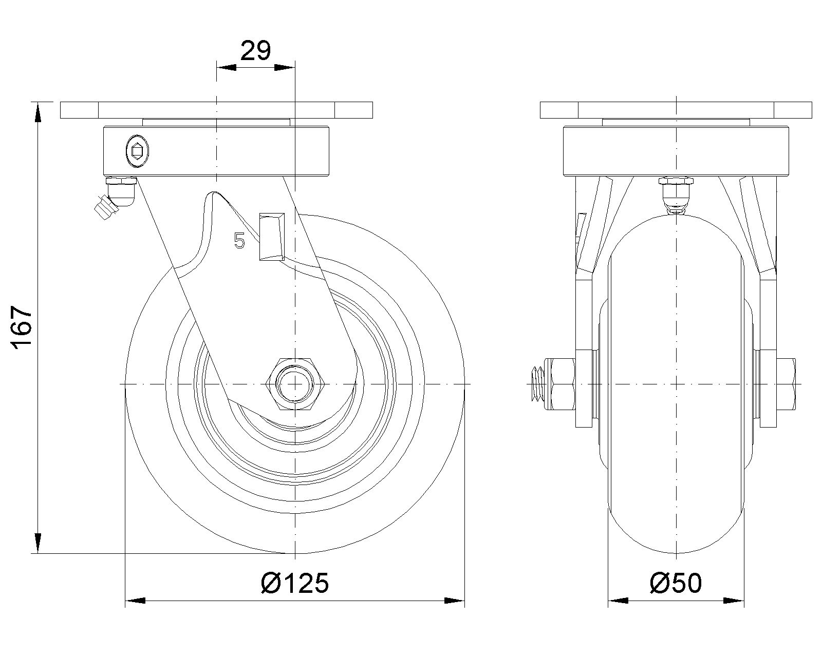 | Wheel tread: Made of high quality polyurethane Wheel Center: iron core/cast iron core Drawings are for reference only and may differ from the product |