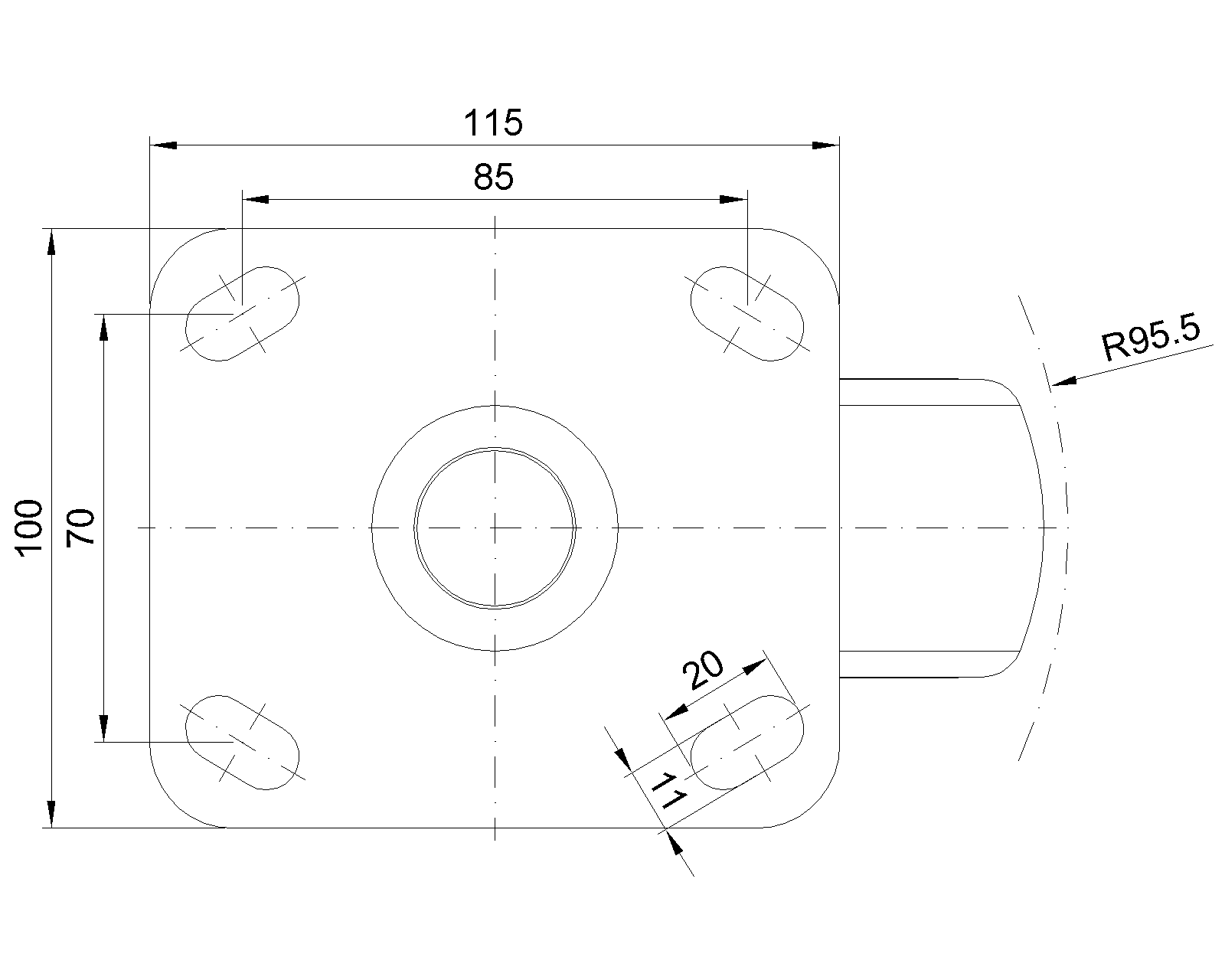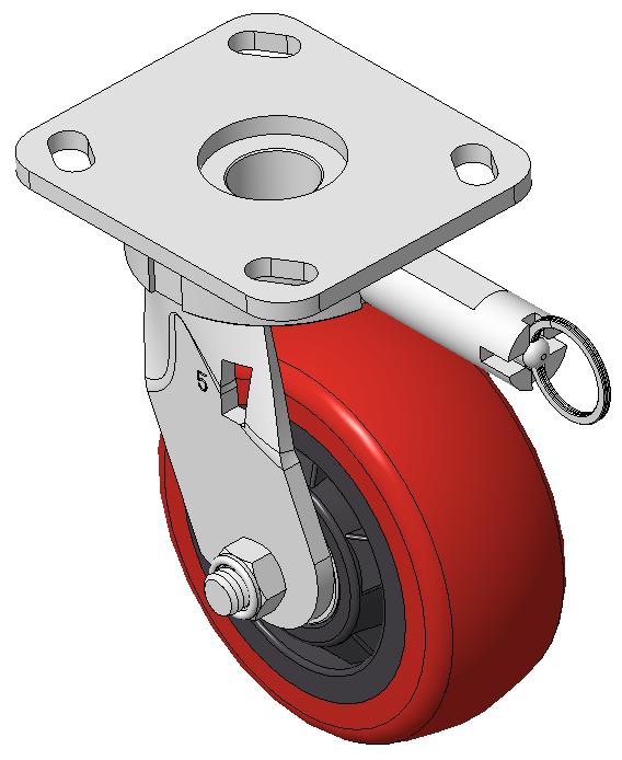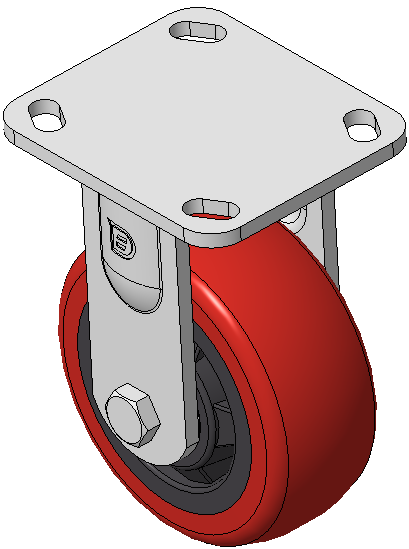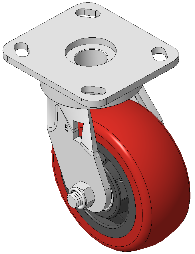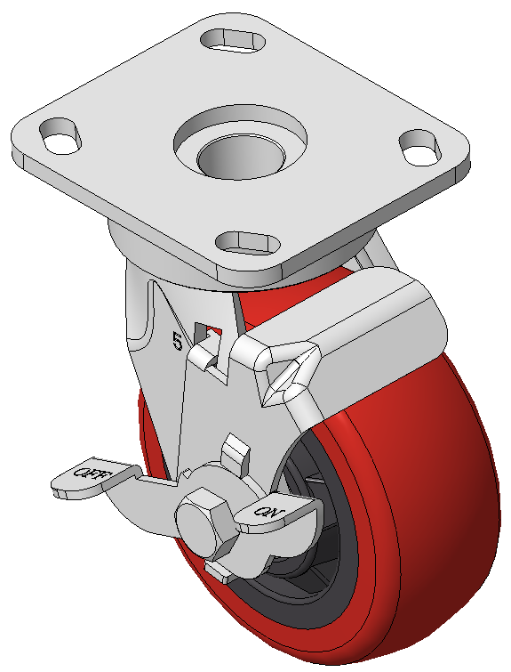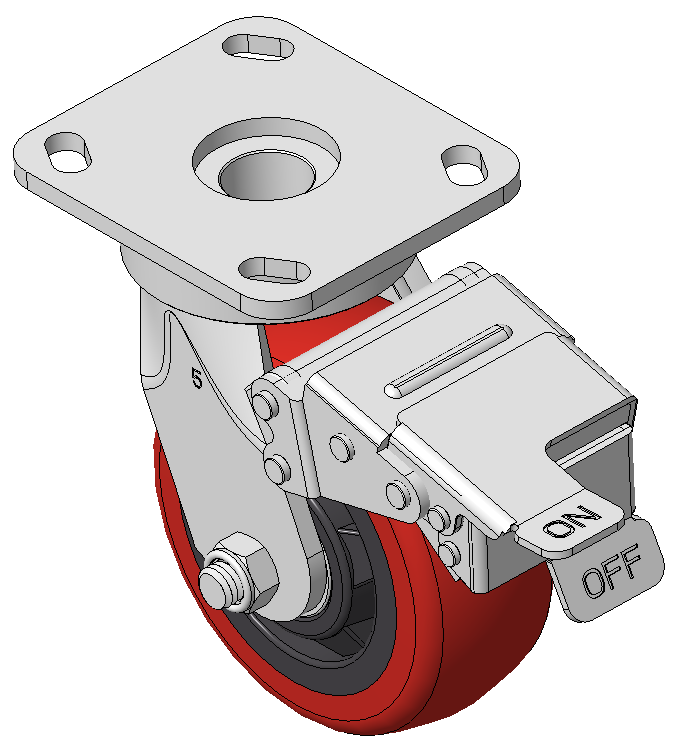 | Swivel Caster, Welded Caster Fork Extended control lever surface, Top Plate Mounting Type, Hole spacing 85x70 Cast Iron Wheel Center, High Quality Polyurethane Wheel Tread, Cast Iron red Bearing - Ball Bearing |