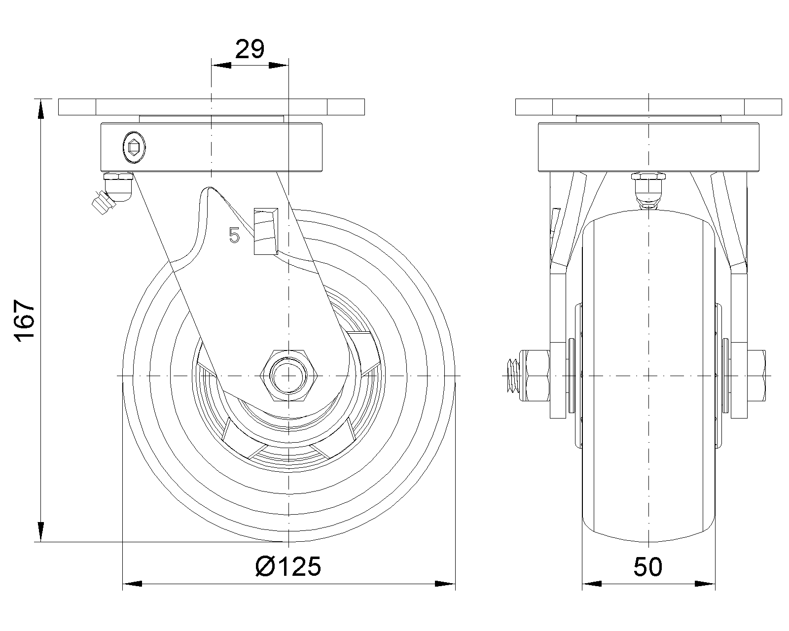 | Wheel tread: Made of high quality polyurethane Wheel Center: iron core/cast iron core Drawings are for reference only and may differ from the product |