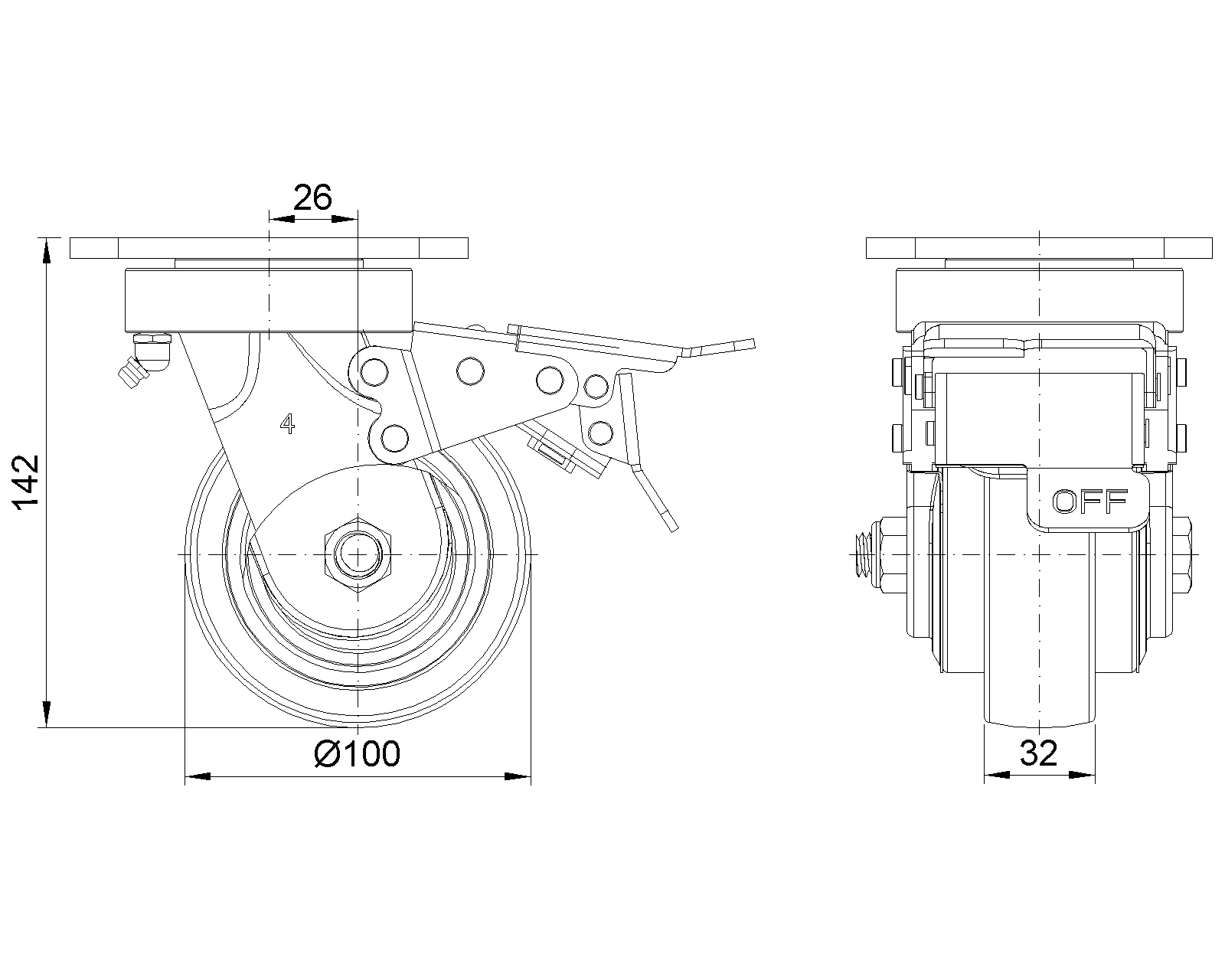 | Wheel tread: Thermoplastic (PA6) Wheel Center: Thermoplastic (PA6) Drawings are for reference only and may differ from the product |