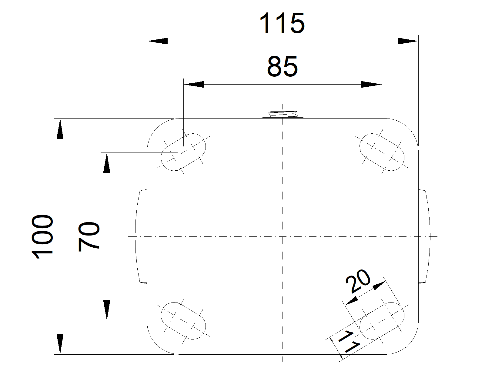 | Rigid Caster with Welded Caster Fork Zine-Plated, Mounting Type - Top Plate, 85x70 Bolt Hole Spacing Cast Iron Wheel Center with High Quality Polyurethane tread, Cast Iron brown Bearing—Ball Bearing |