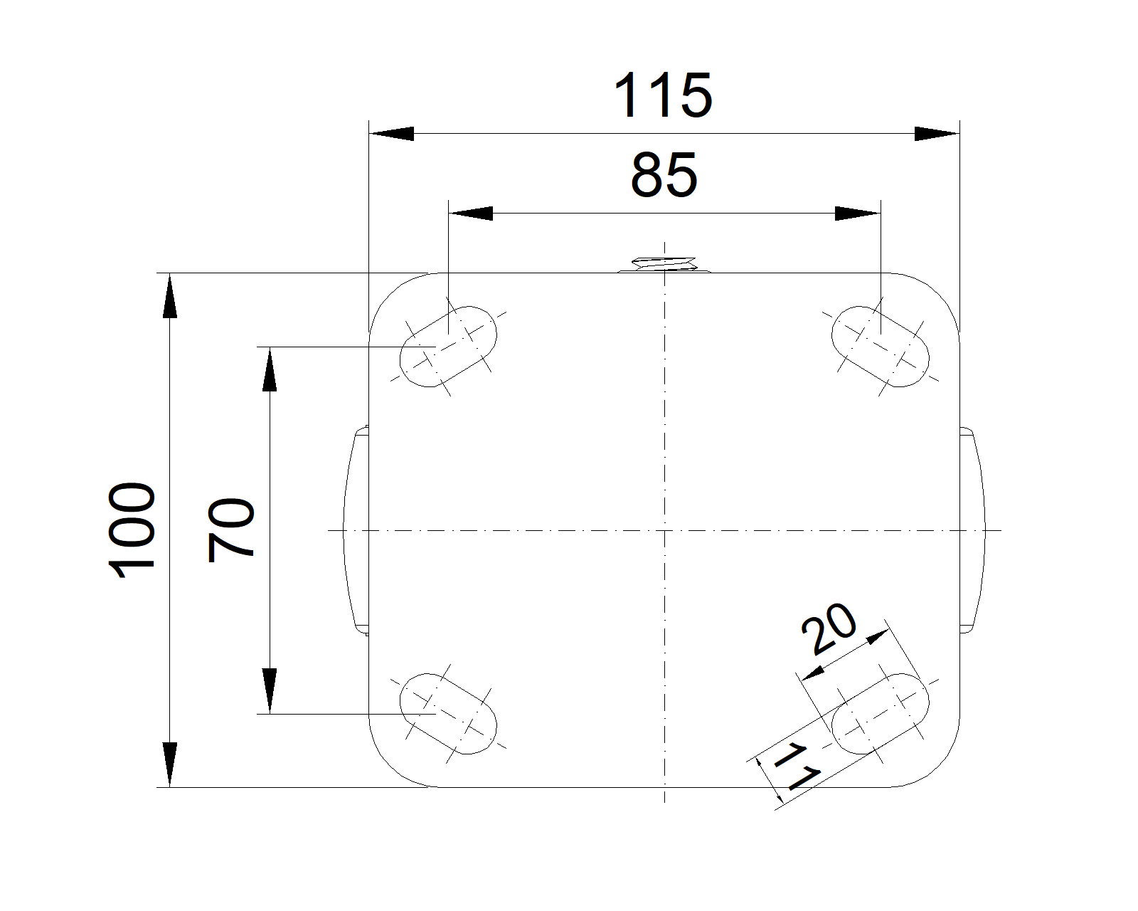| Rigid Caster, Welded Caster Fork Extended control lever surface, Top Plate Mounting Type, Hole spacing 85x70 Polypropylene Wheel Center, Wheel Tread Natural Color Bearing - Ball Bearing, with special Anti-thread wheel cover |
