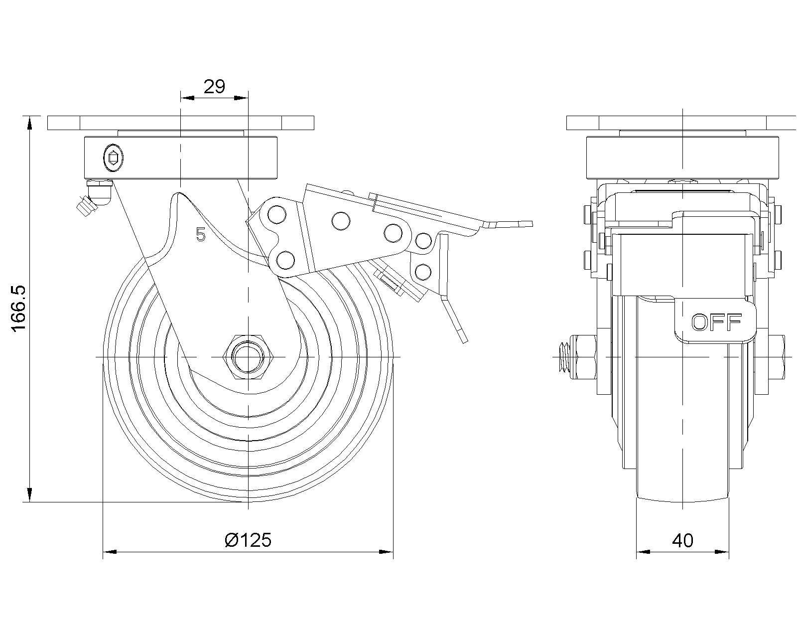 | Wheel tread: Made of high-quality polyurethane Wheel Center: iron core/cast iron core Drawings are for reference only and may differ from the product |