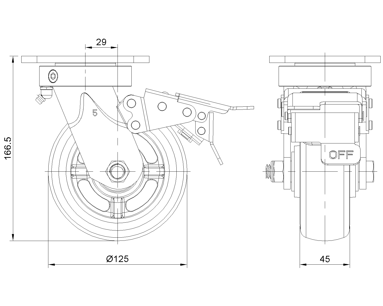 | Wheel tread: Made of high-quality polyurethane Wheel Center: iron core/cast iron core Drawings are for reference only and may differ from the product |