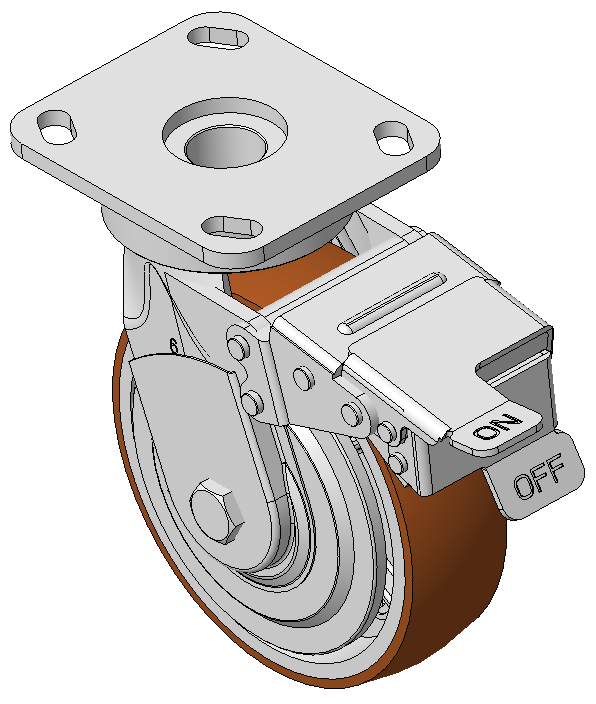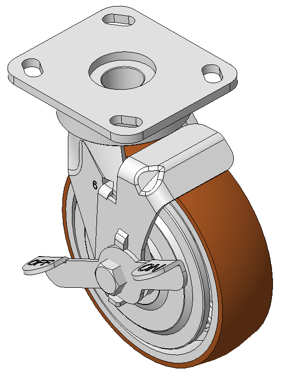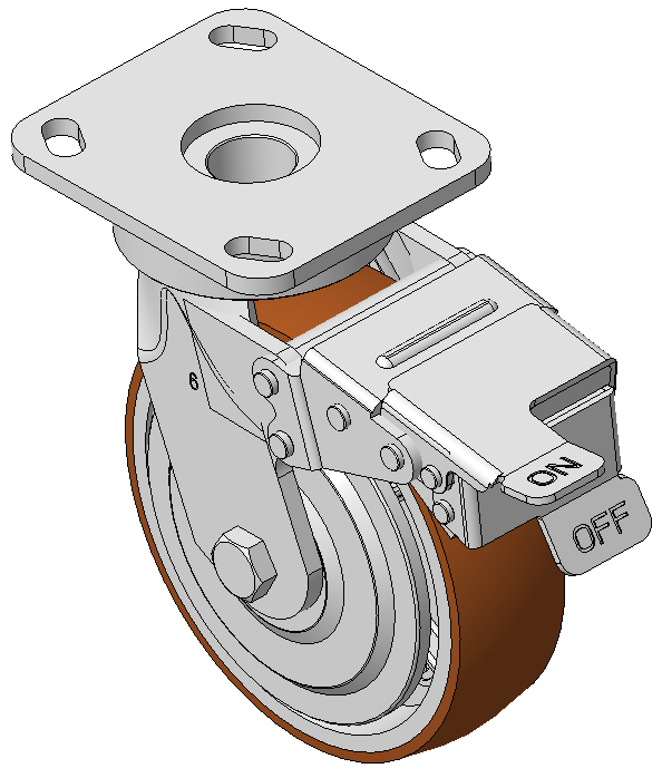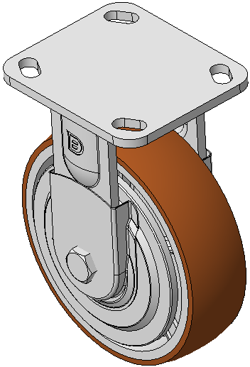 | Rigid Caster with Welded Caster Fork Zine-Plated, Mounting Type - Top Plate, 85x70 Bolt Hole Spacing Cast Iron Wheel Center with High Quality Polyurethane tread, Cast Iron brown Bearing—Ball Bearing |