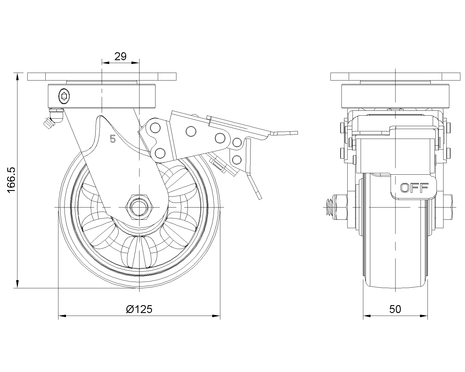| Wheel tread: Made of high-quality polyurethane Wheel Center: iron core/cast iron core Drawings are for reference only and may differ from the product |