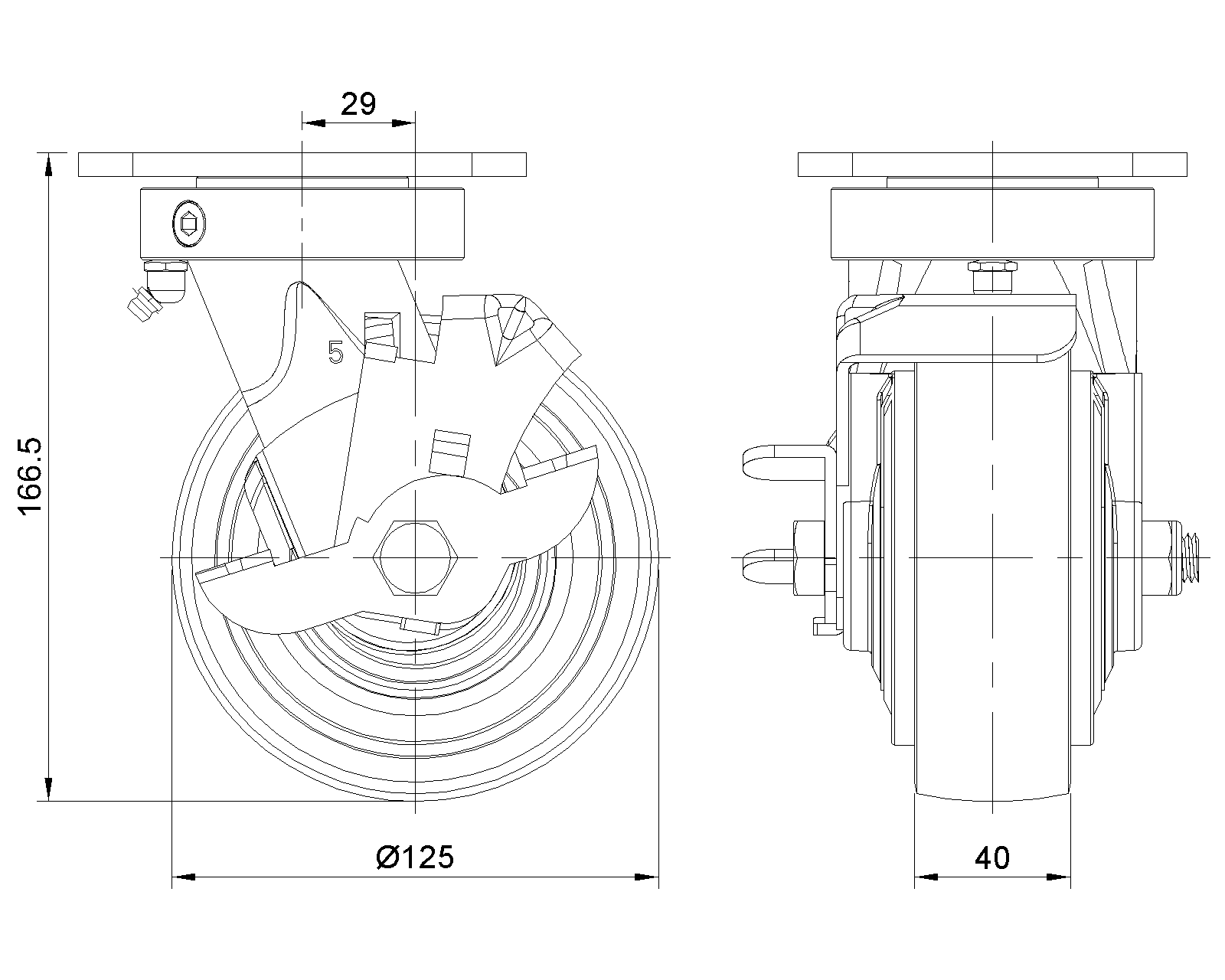| Wheel tread: Made of high-quality polyurethane Wheel Center: iron core/cast iron core Drawings are for reference only and may differ from the product |