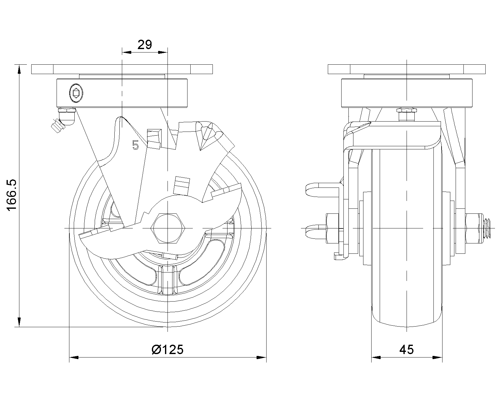 | Wheel tread: Made of high-quality polyurethane Wheel Center: iron core/cast iron core Drawings are for reference only and may differ from the product |