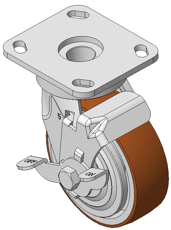 Zine-Plated, Mounting Type - Top Plate, 85x70 Bolt Hole Spacing Cast Iron Wheel Center, High Quality Polyurethane Wheel Tread, Cast Iron brown Bearings—Ball Bearings |