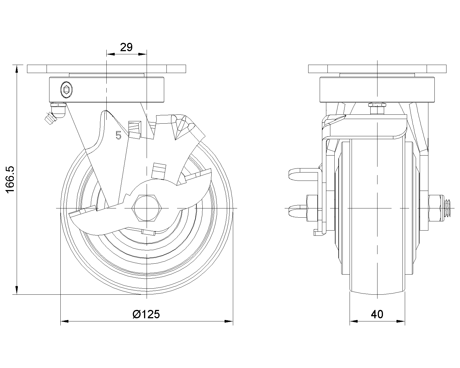 | Wheel tread: Thermoplastic (PA6) Wheel Center: Thermoplastic (PA6) Drawings are for reference only and may differ from the product |