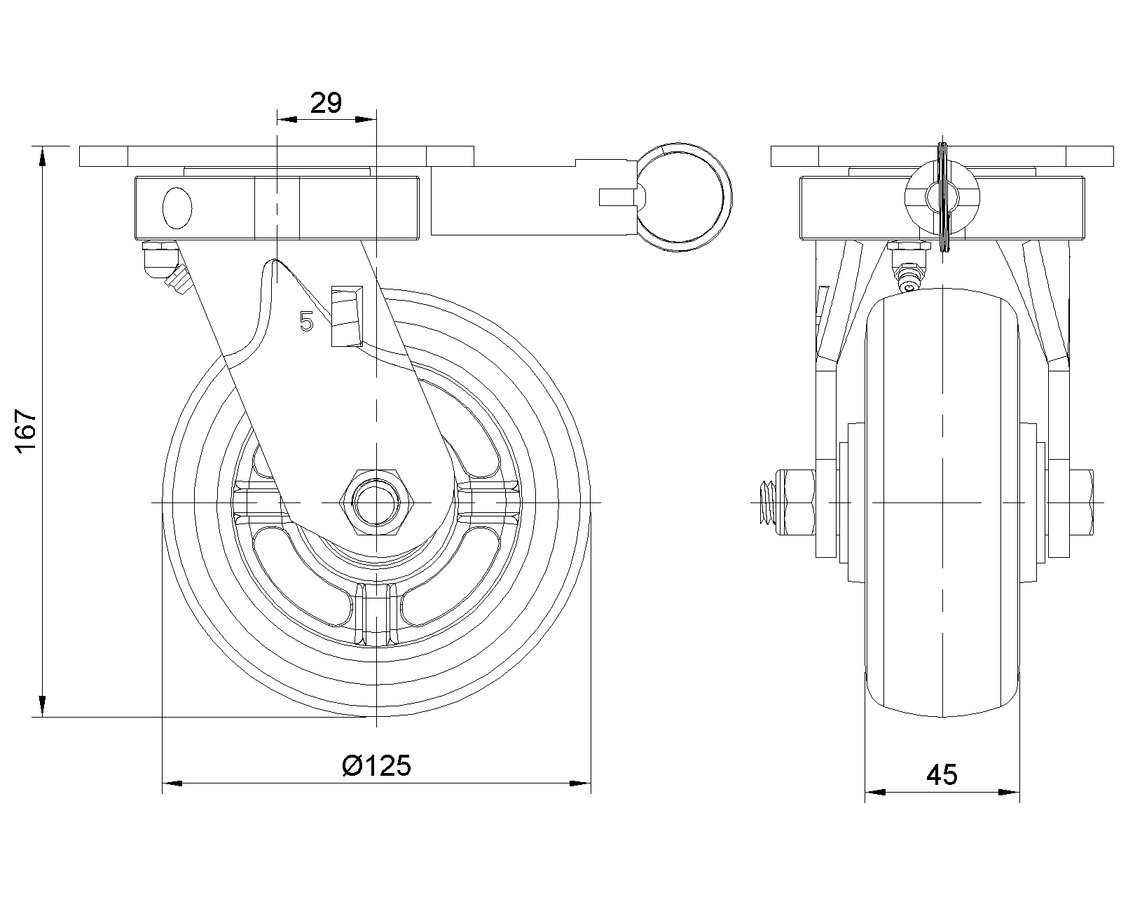 | Wheel tread: Made of high-quality polyurethane Wheel Center: iron core/cast iron core Drawings are for reference only and may differ from the product |