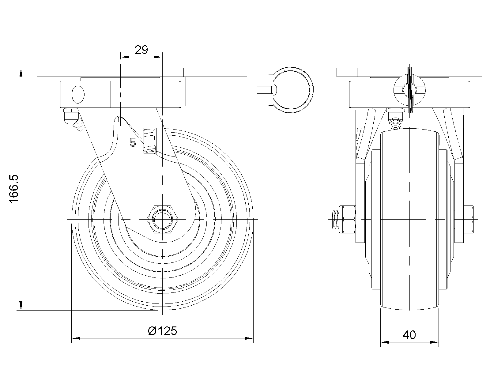 | Wheel tread: Thermoplastic (PA6) Wheel Center: Thermoplastic (PA6) Drawings are for reference only and may differ from the product |