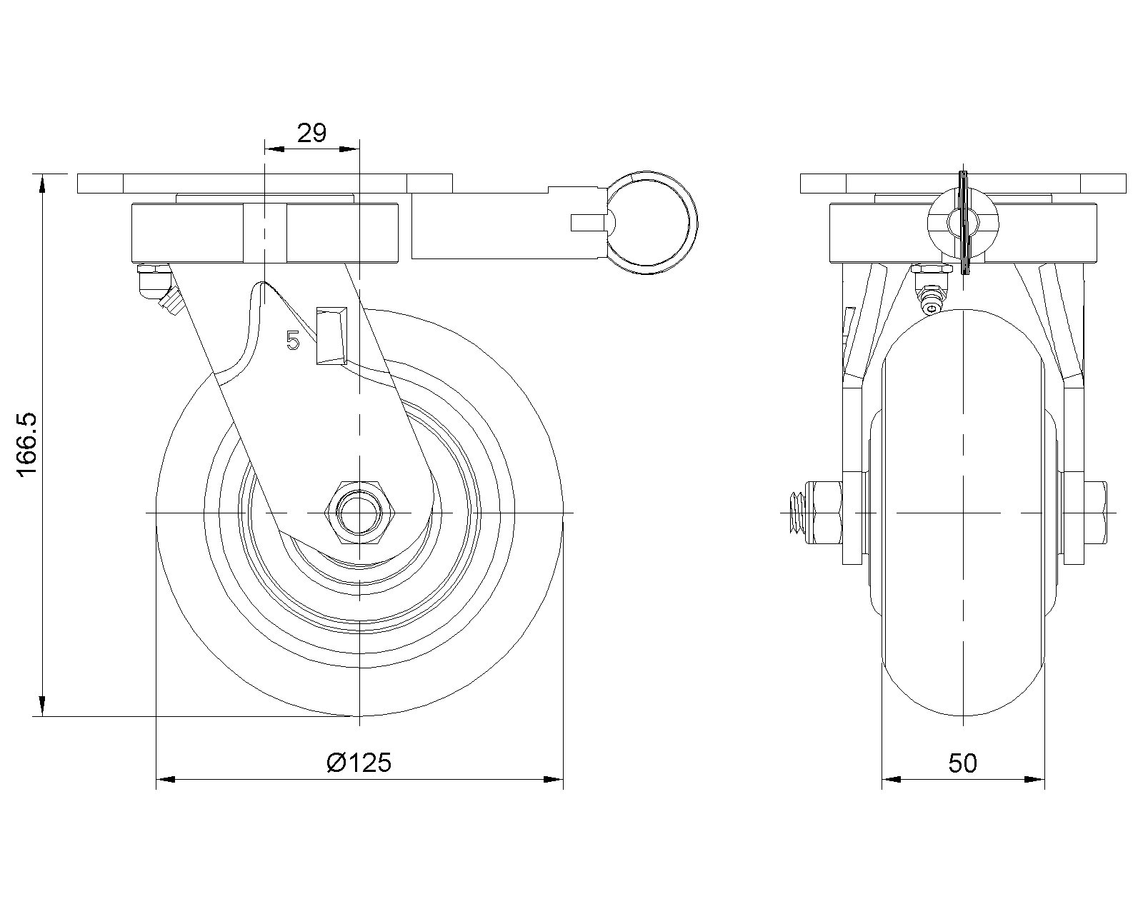| EQPU (brown round) Wheel Diameter x Wheel Width 125 x 50mm |