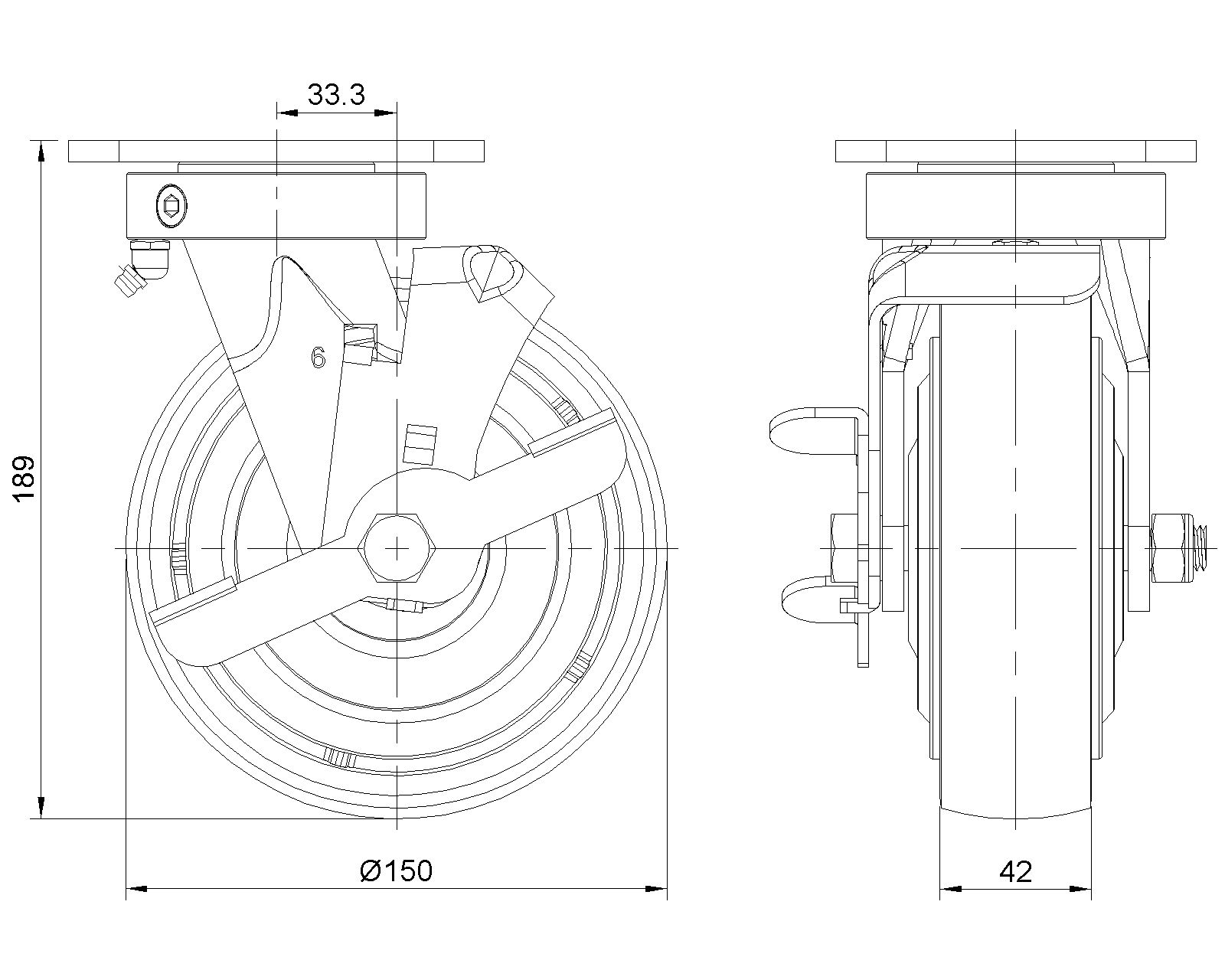| Wheel tread: Made of high-quality polyurethane Wheel Center: iron core/cast iron core Drawings are for reference only and may differ from the product |
