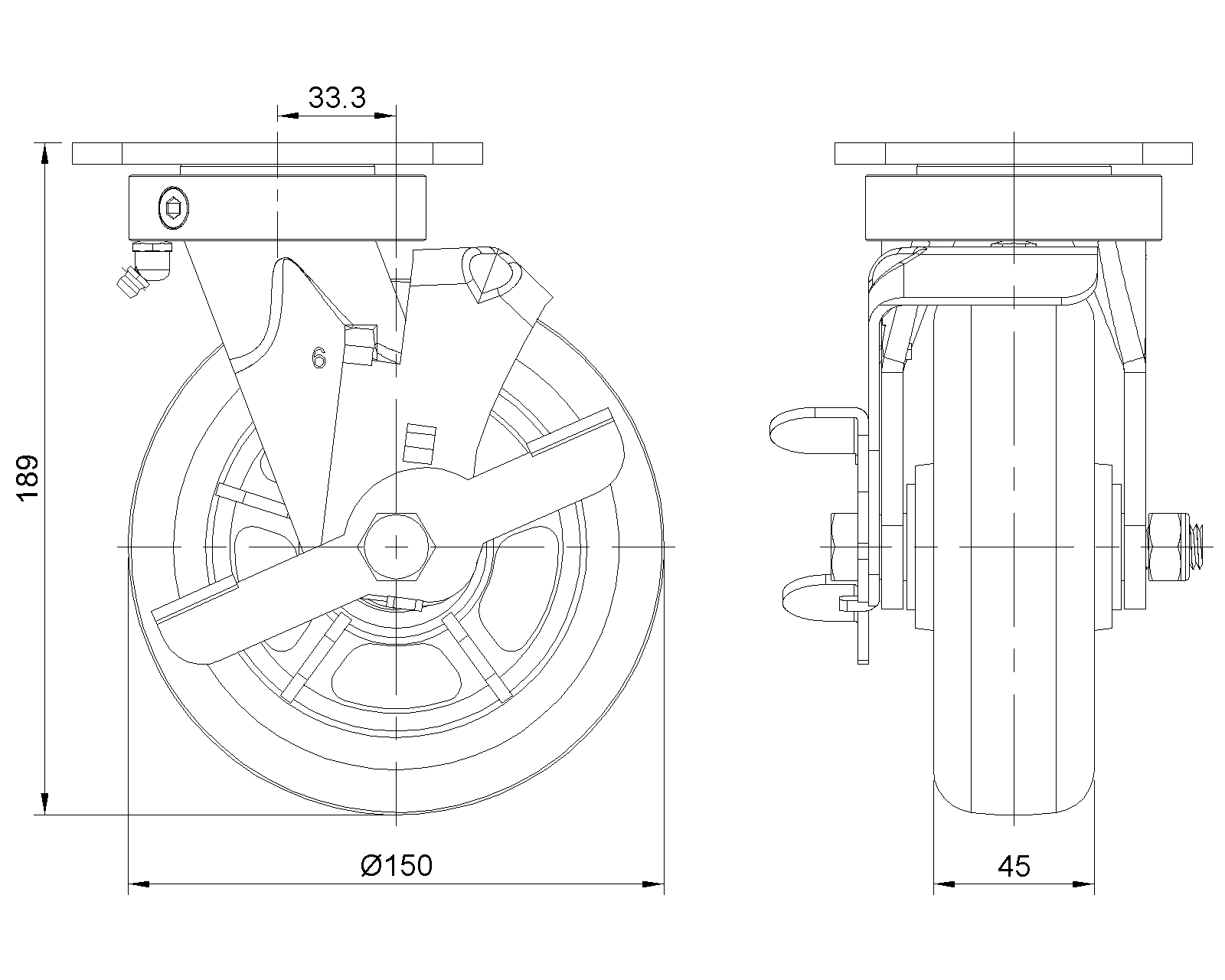 | Wheel tread: Made of high-quality polyurethane Wheel Center: iron core/cast iron core Drawings are for reference only and may differ from the product |