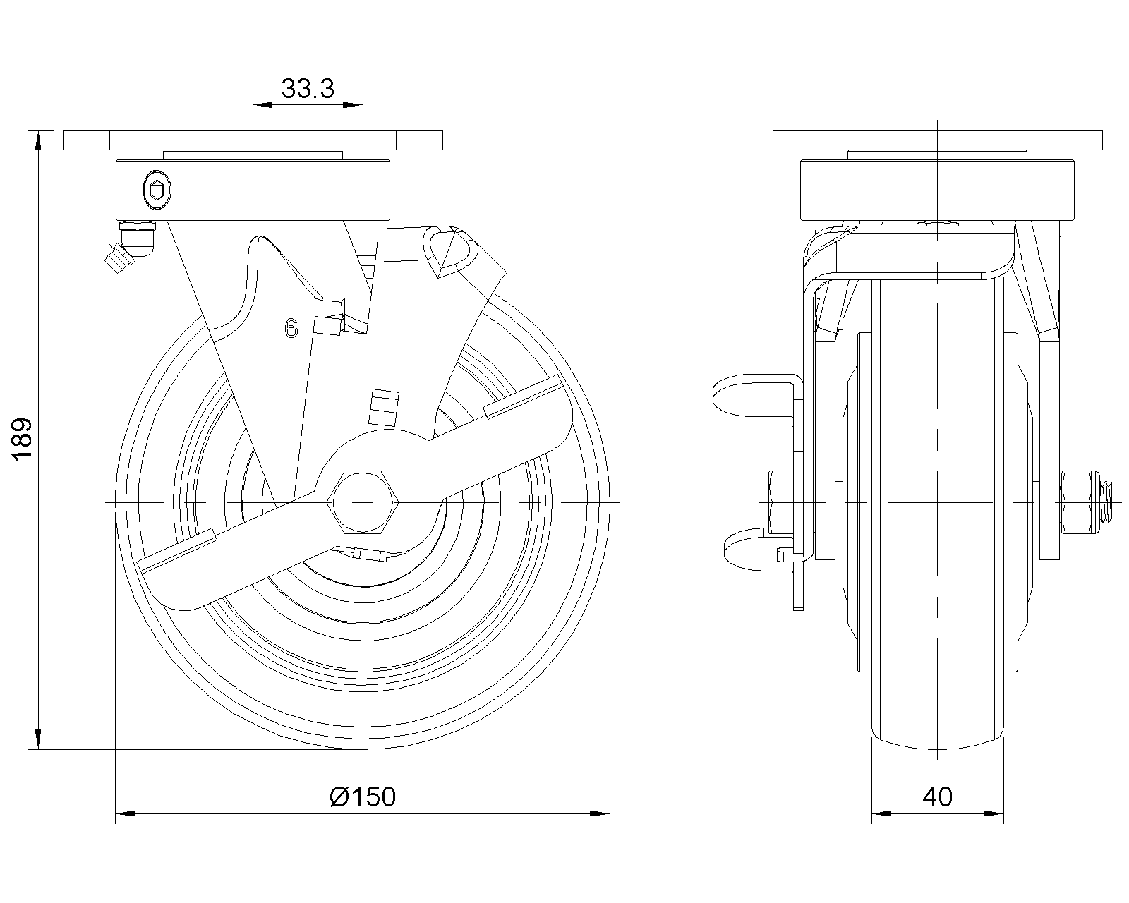 | Wheel tread: Thermoplastic (PA6) Wheel Center: Thermoplastic (PA6) Drawings are for reference only and may differ from the product |