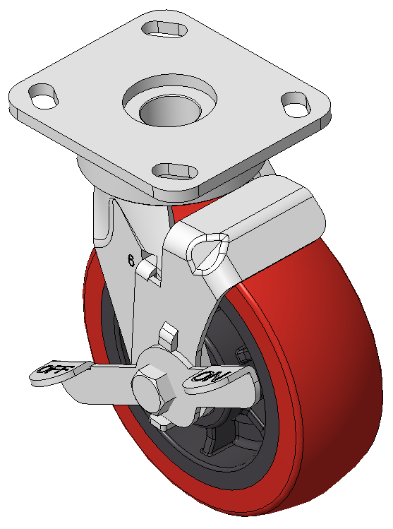Zine-Plated, Mounting Type - Top Plate, 85x70 Bolt Hole Spacing Cast Iron core with High Quality Polyurethane Wheel Tread, Cast Iron black-red Bearings—Ball Bearings |