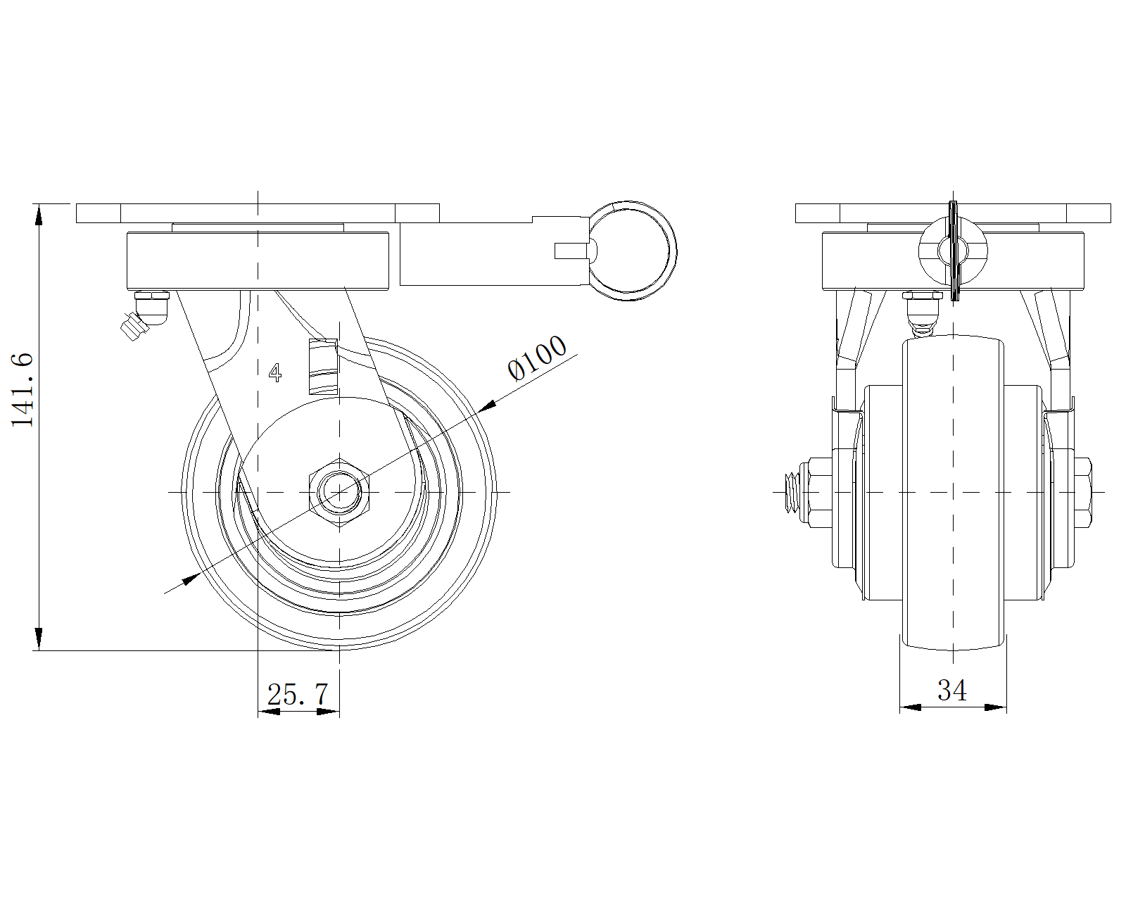 | Wheel tread: Thermoplastic (PA6) Wheel Center: Thermoplastic (PA6) Drawings are for reference only and may differ from the product |