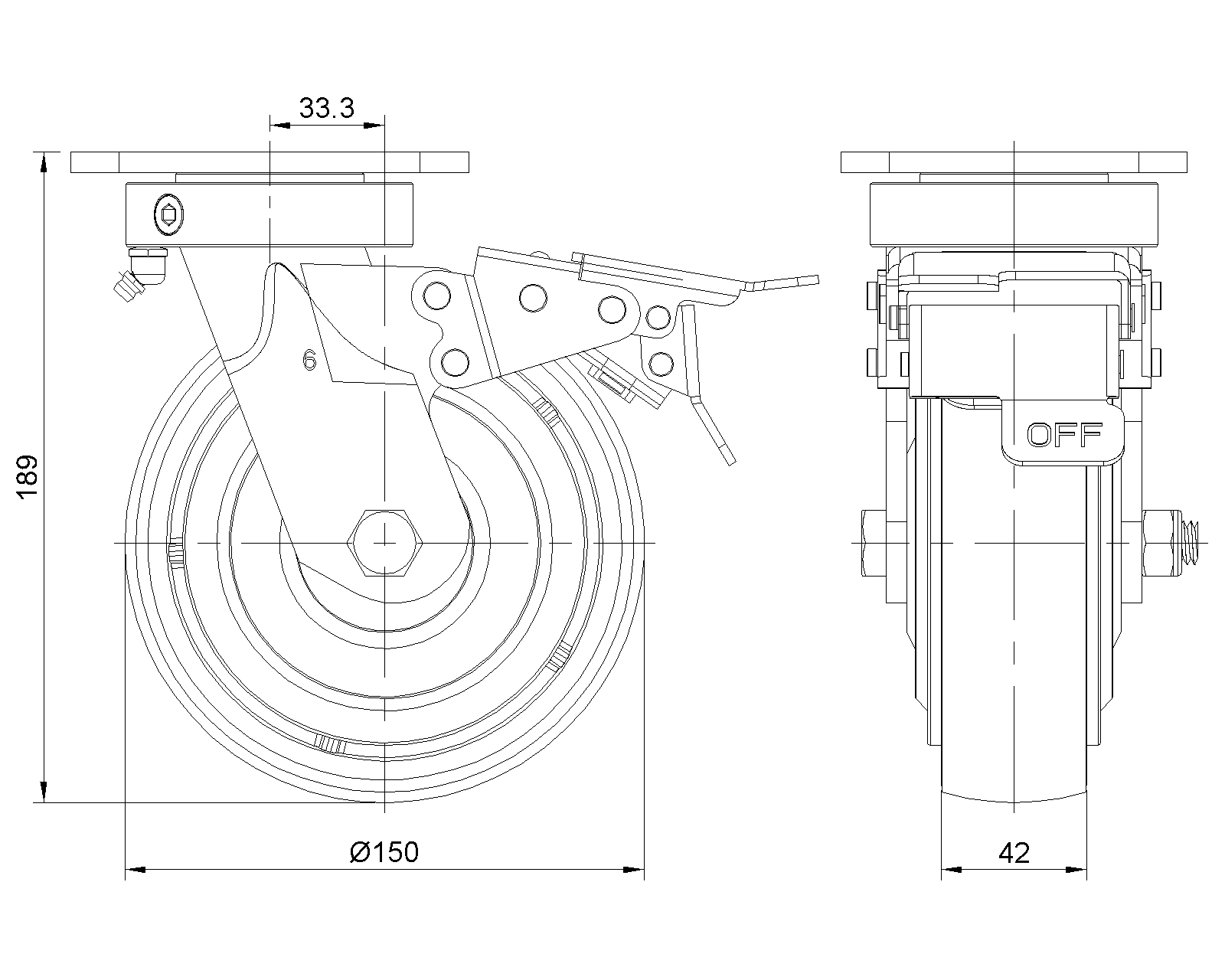 | QPU (Brown round) Wheel Diameter × Wheel Width 150 x 42mm |