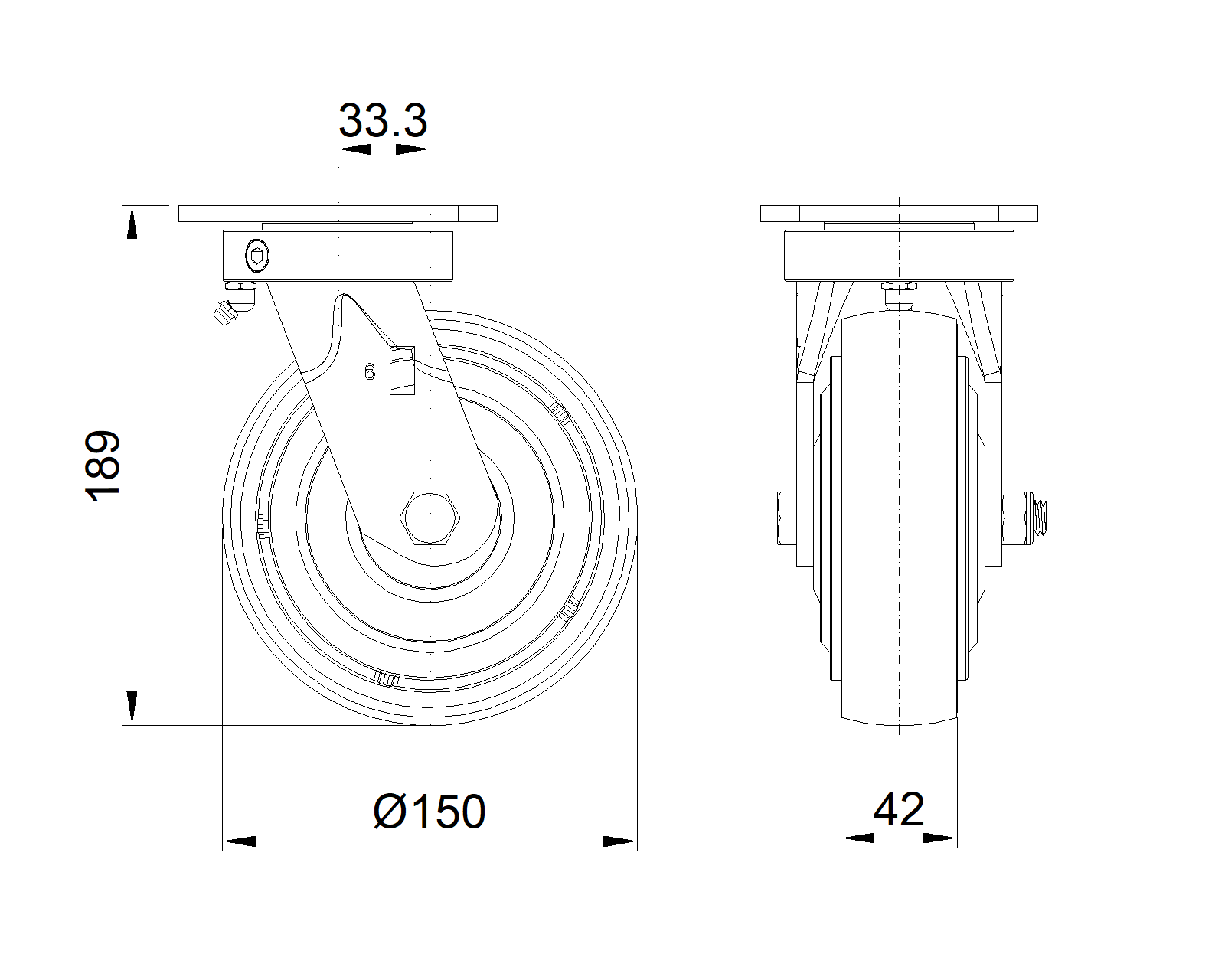 | Wheel tread: Made of high-quality polyurethane Wheel Center: iron core/cast iron core Drawings are for reference only and may differ from the product |