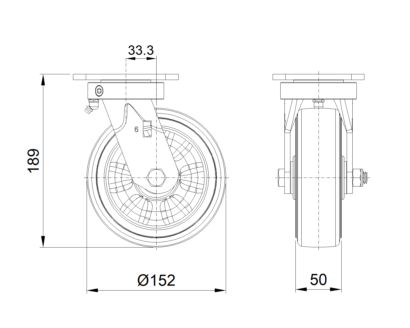 | Wheel tread: Made of high-quality polyurethane Wheel Center: iron core/cast iron core Drawings are for reference only and may differ from the product |