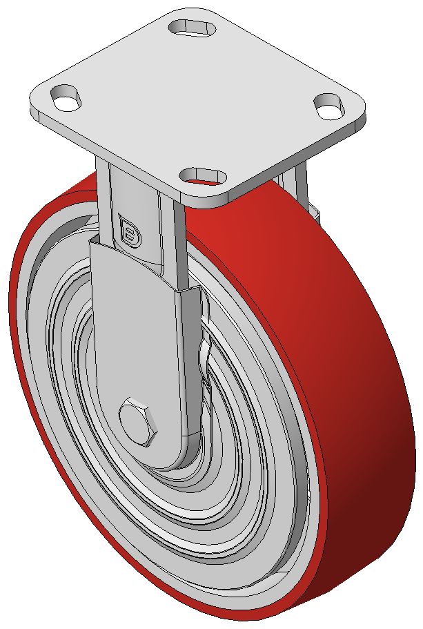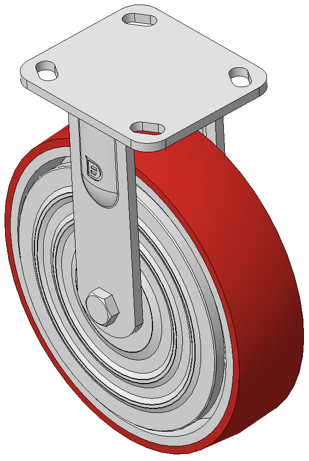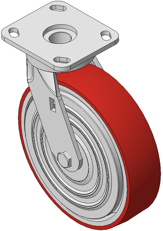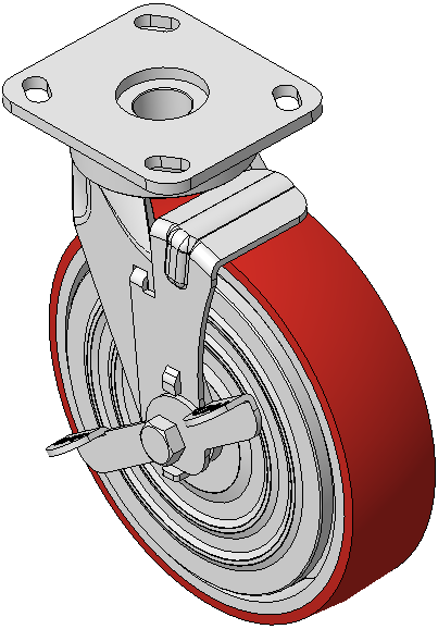 | Rigid castor, Welded Caster Fork Extended control lever surface, Top Plate Mounting Type, Hole spacing 85x70 Cast Iron Wheel Center, High Quality Polyurethane wheel tread, Cast Iron red Bearing - Ball Bearing |