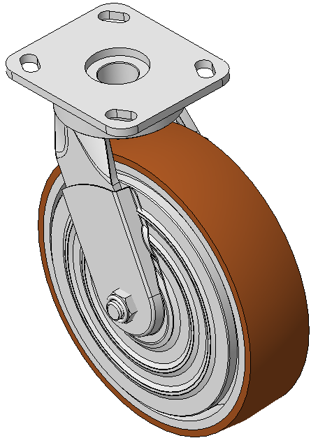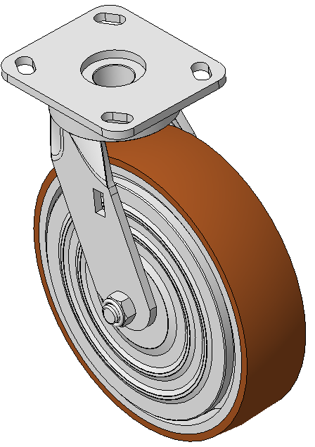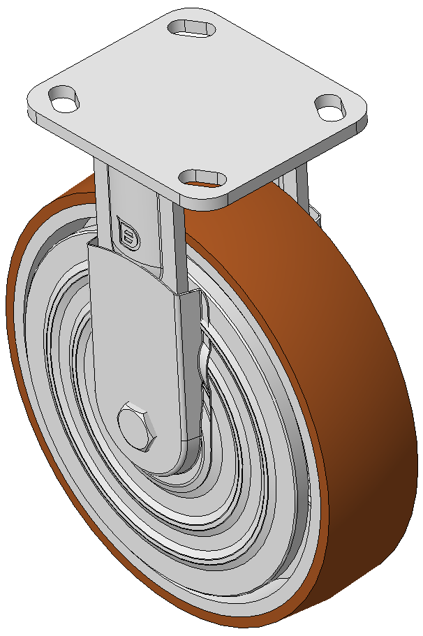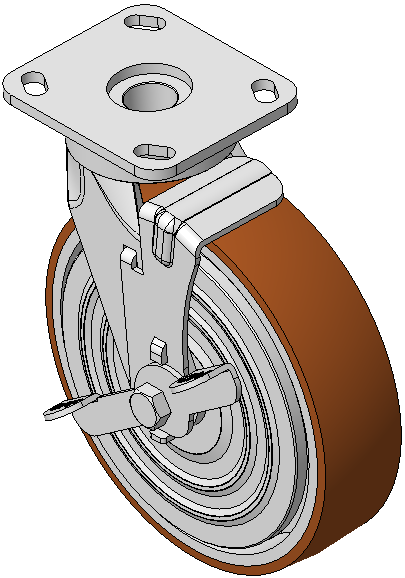 | Casters with Side Brakes and Locking system, Welded Caster Fork Zine-Plated, Mounting Type - Top Plate, 85x70 Bolt Hole Spacing Cast Iron Wheel Center, High Quality Polyurethane tread, Cast Iron brown Bearing—Ball Bearing |
