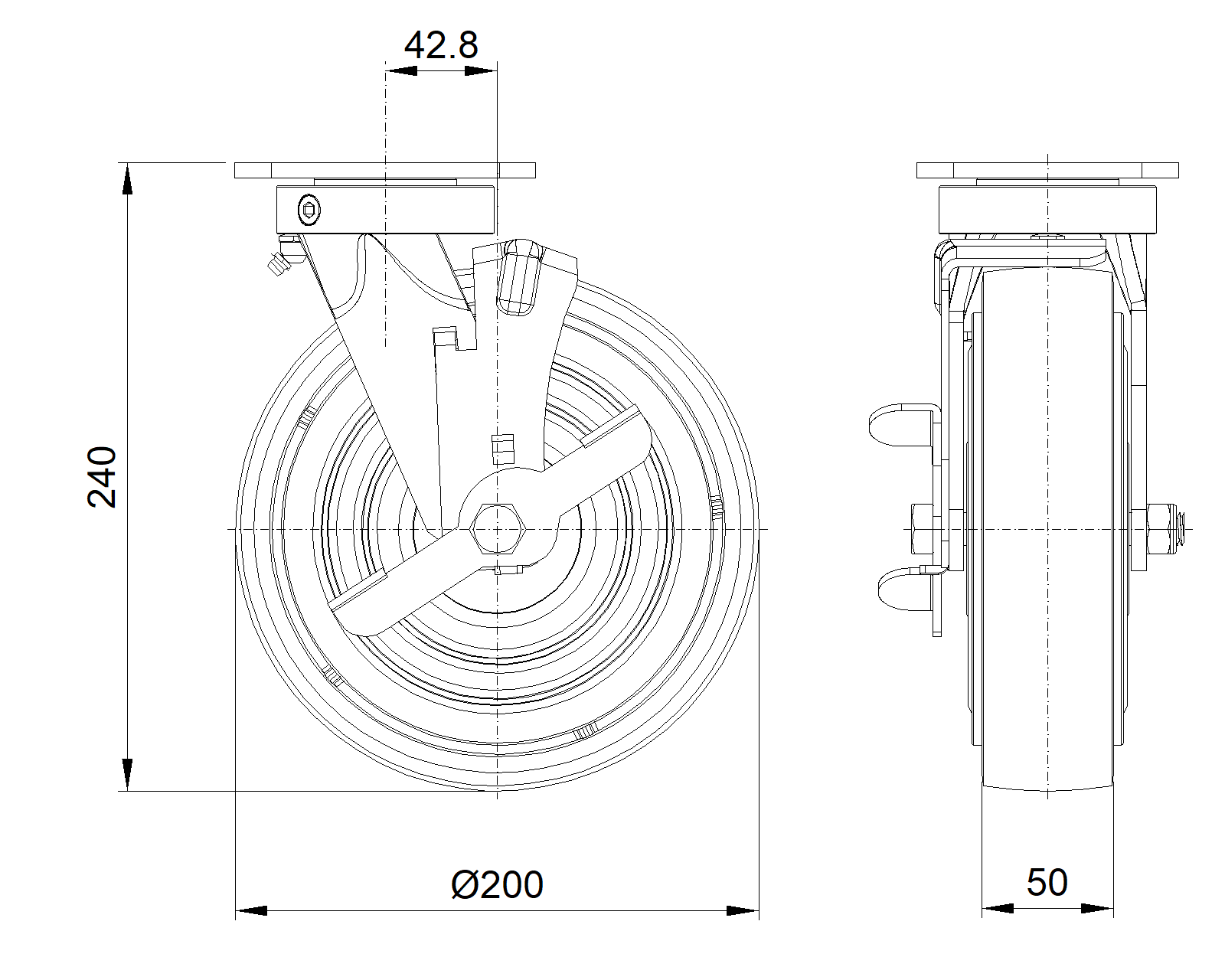 | QPU (brown round) Wheel Diameter x Wheel Width 200 x 50mm |