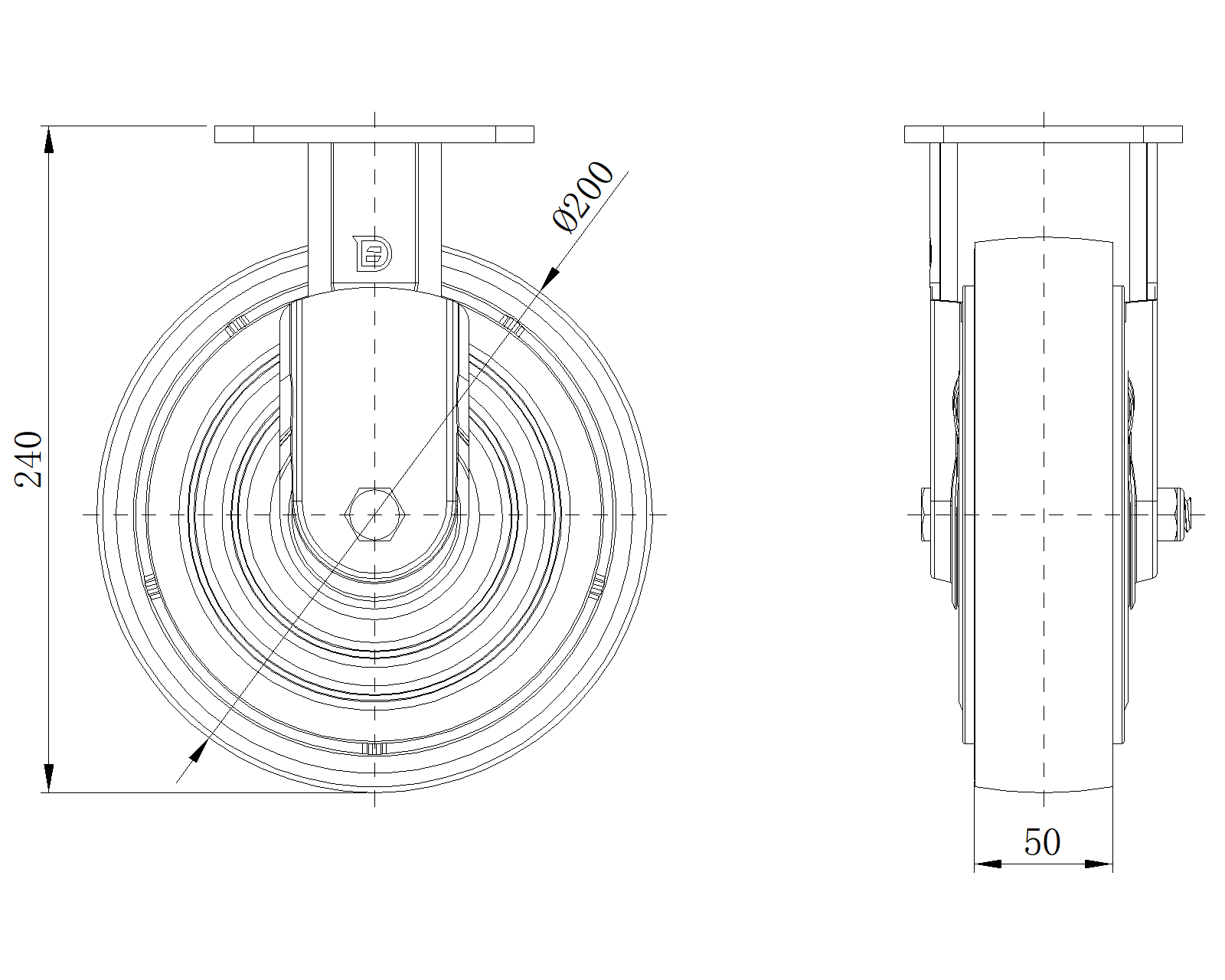 | Wheel tread: Made of high quality polyurethane Wheel center: iron core/cast iron Drawings are for reference only and may differ from the product |