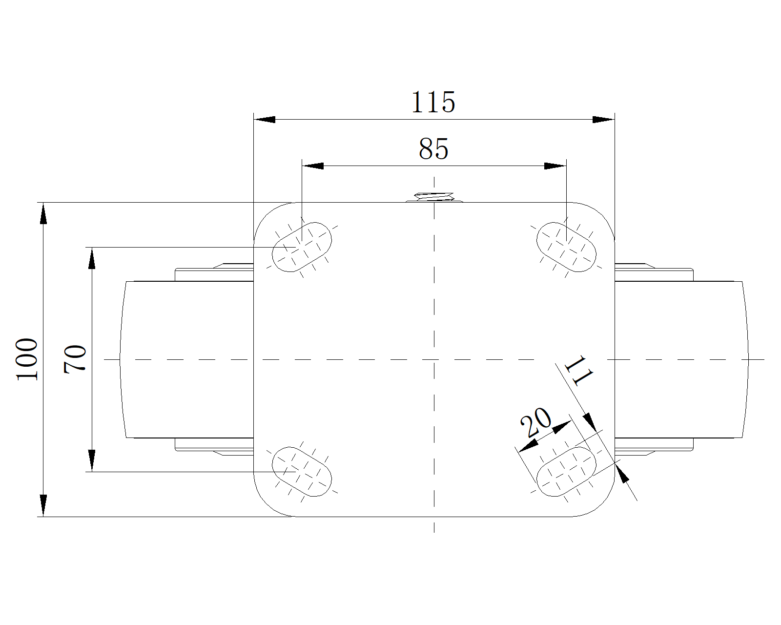 | Rigid castor, Welded Caster Fork Extended control lever surface, Mounting Type - Top Plate, Hole spacing 85x70 Cast Iron Wheel Center, High Quality Polyurethane Wheel Tread, Cast Iron brown Bearing - Ball Bearing, with special Anti-thread wheel cover |