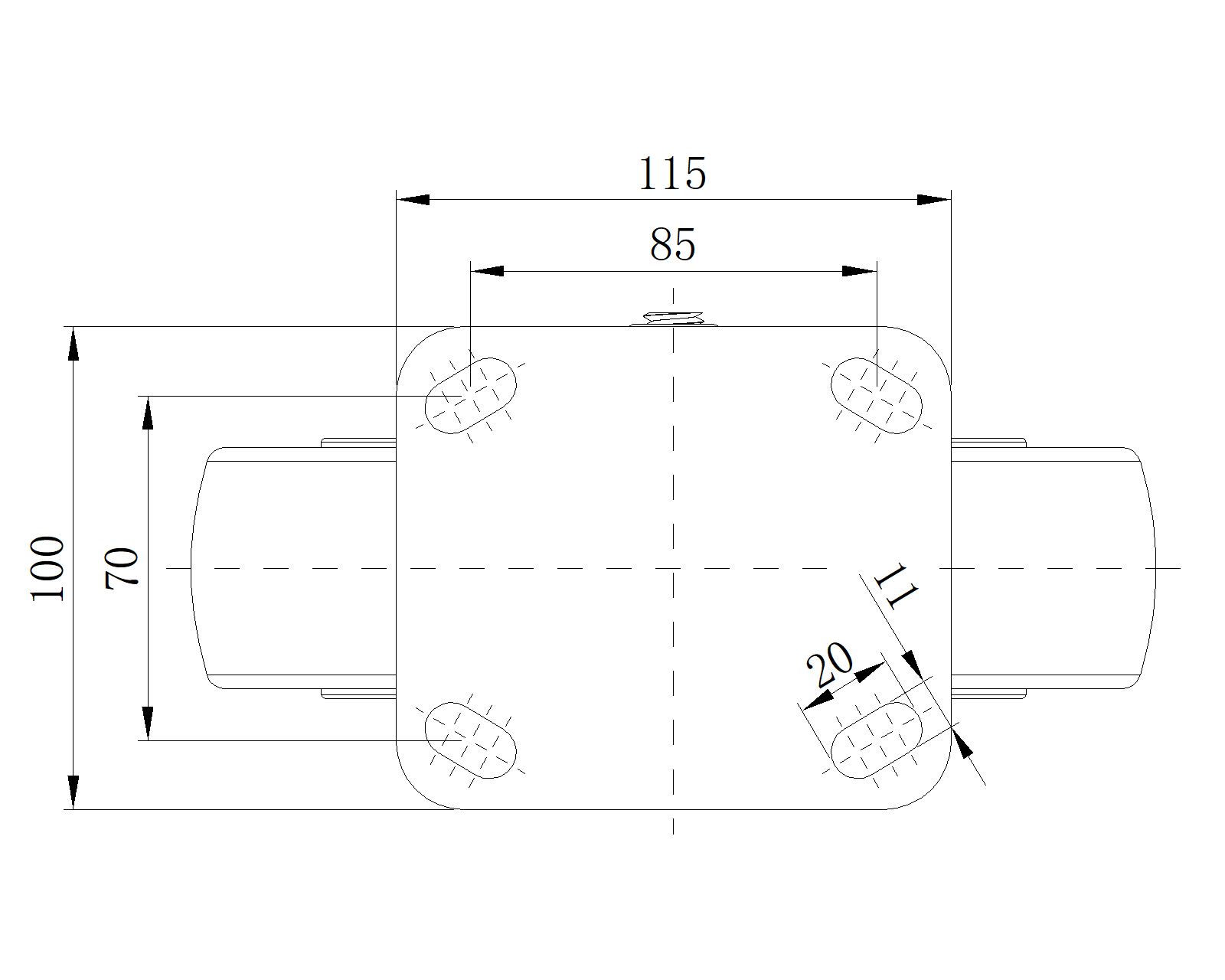 | Rigid Caster, Welded Caster Fork Extended control lever surface, Top Plate Mounting Type, Hole spacing 85x70 Reinforced Polypropylene, Wheel Tread Natural Color Bearing - Ball Bearing |