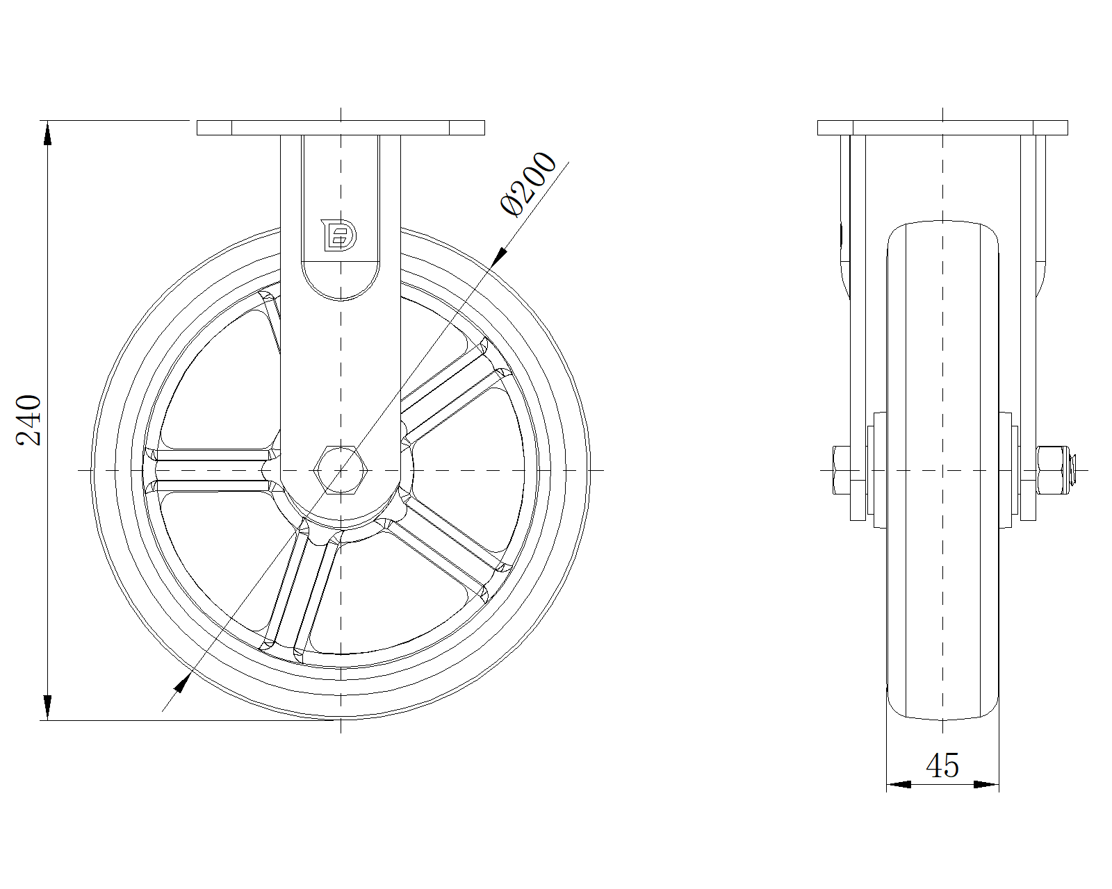 | Wheel tread: Made of high quality polyurethane Wheel Center: iron core/cast iron core Drawings are for reference only and may differ from the product |