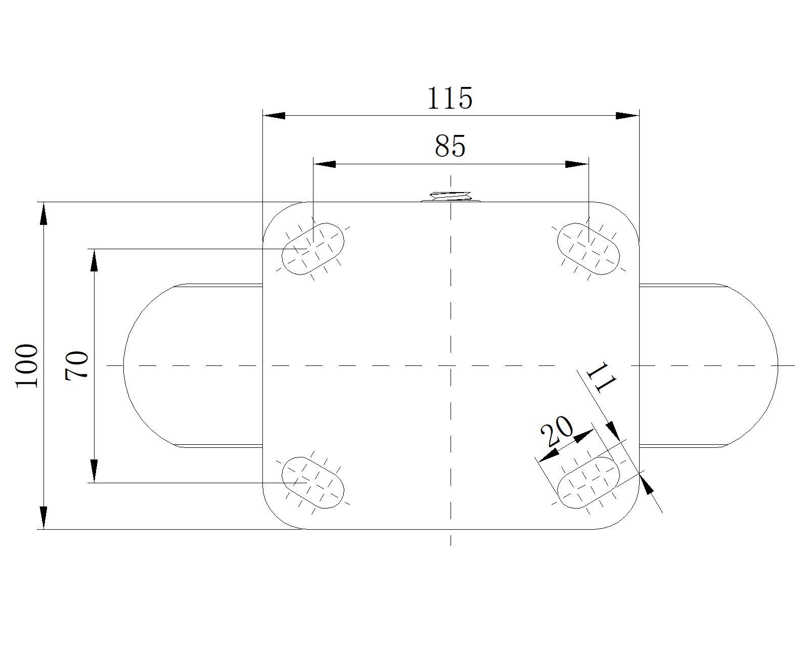 | Rigid castor, Welded Caster Fork Extended control lever surface, Top Plate Mounting Type, Hole spacing 85x70 Cast Iron Wheel Center, High Quality Polyurethane Wheel Tread, Cast Iron black and red Bearing - Ball Bearing |